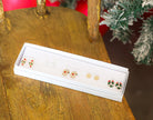 Spread holiday cheer with this festive five-piece earring collection. Mix and match candy cane stripes, lustrous pearl studs, jolly Santa designs, elegant gold snowflakes, and charming wreath accents to match your seasonal mood. Perfect for rotating through the entire holiday season or gifting to the earring lover on your list. Each pair brings its own festive flair while maintaining a polished, wearable aesthetic. Celebrate in style with versatile pieces that transition seamlessly from casual gatherings to holiday parties.