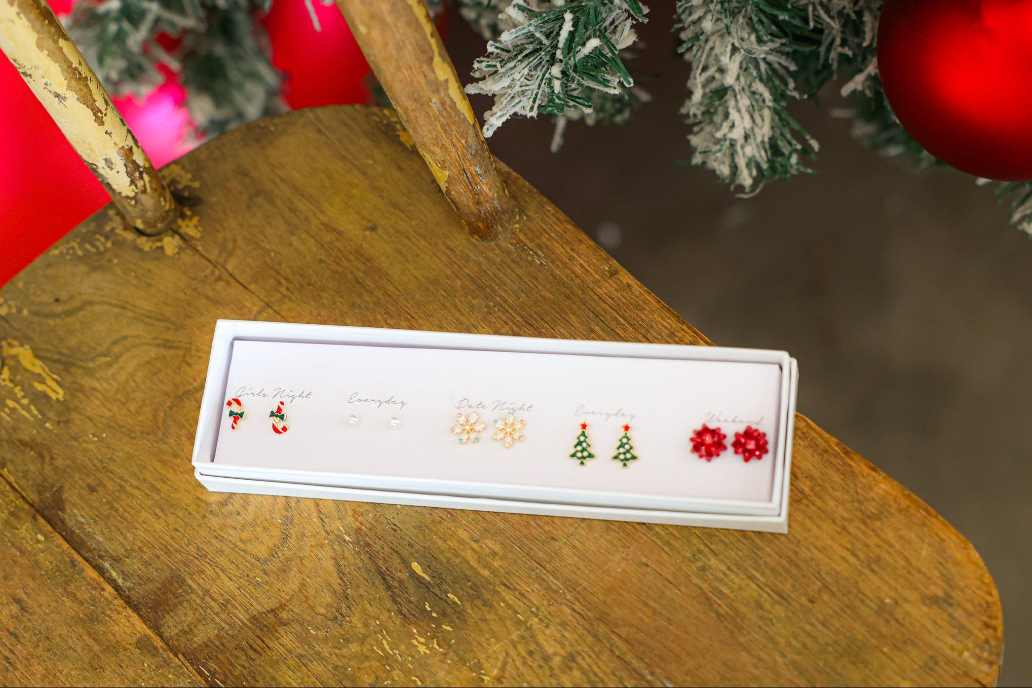Transform your holiday style with this stunning five-piece earring set designed for festive versatility. Featuring a classic candy cane, timeless pearl studs, delicate snowflakes, iconic Christmas tree, and bold red star bow—you'll have endless options to match every seasonal occasion. Swap pairs throughout the day to keep your look exciting and on-theme, or layer them for a personalized holiday statement. The perfect way to add sparkle and cheer to your December wardrobe while treating yourself or surprising someone special.