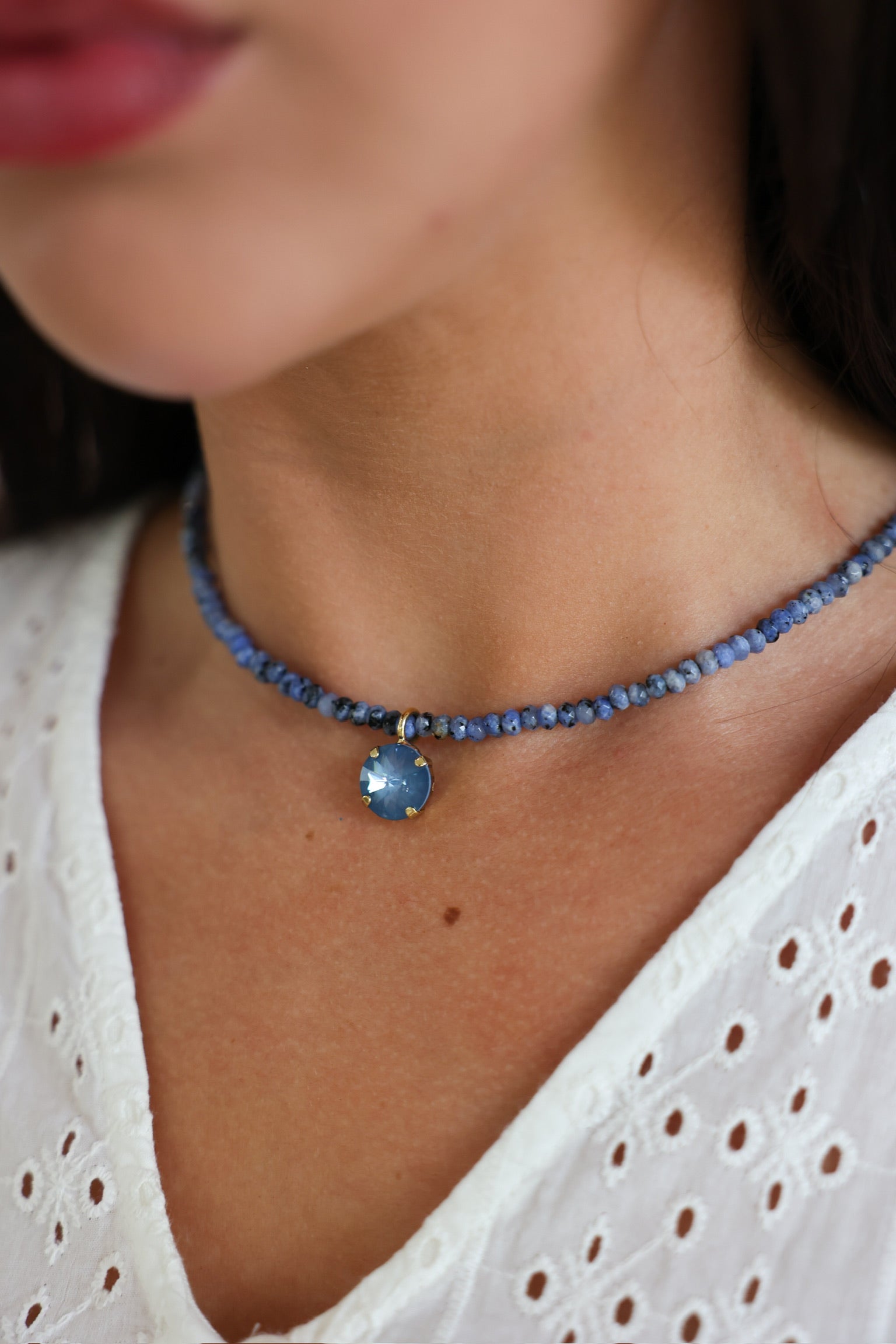 This piece is the perfect mix of minimal + eye-catching. The rich blue beaded strand gives you that subtle pop of color, while the single crystal drop adds just enough sparkle to elevate it.