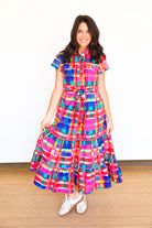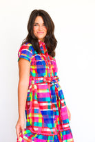 This dress is perfect for any occasion, offering unbeatable style that will leave you feeling confident and fabulous. The Rachel is a short sleeve button down maxi dress with a matching adjustable belt - in our new plaid print.