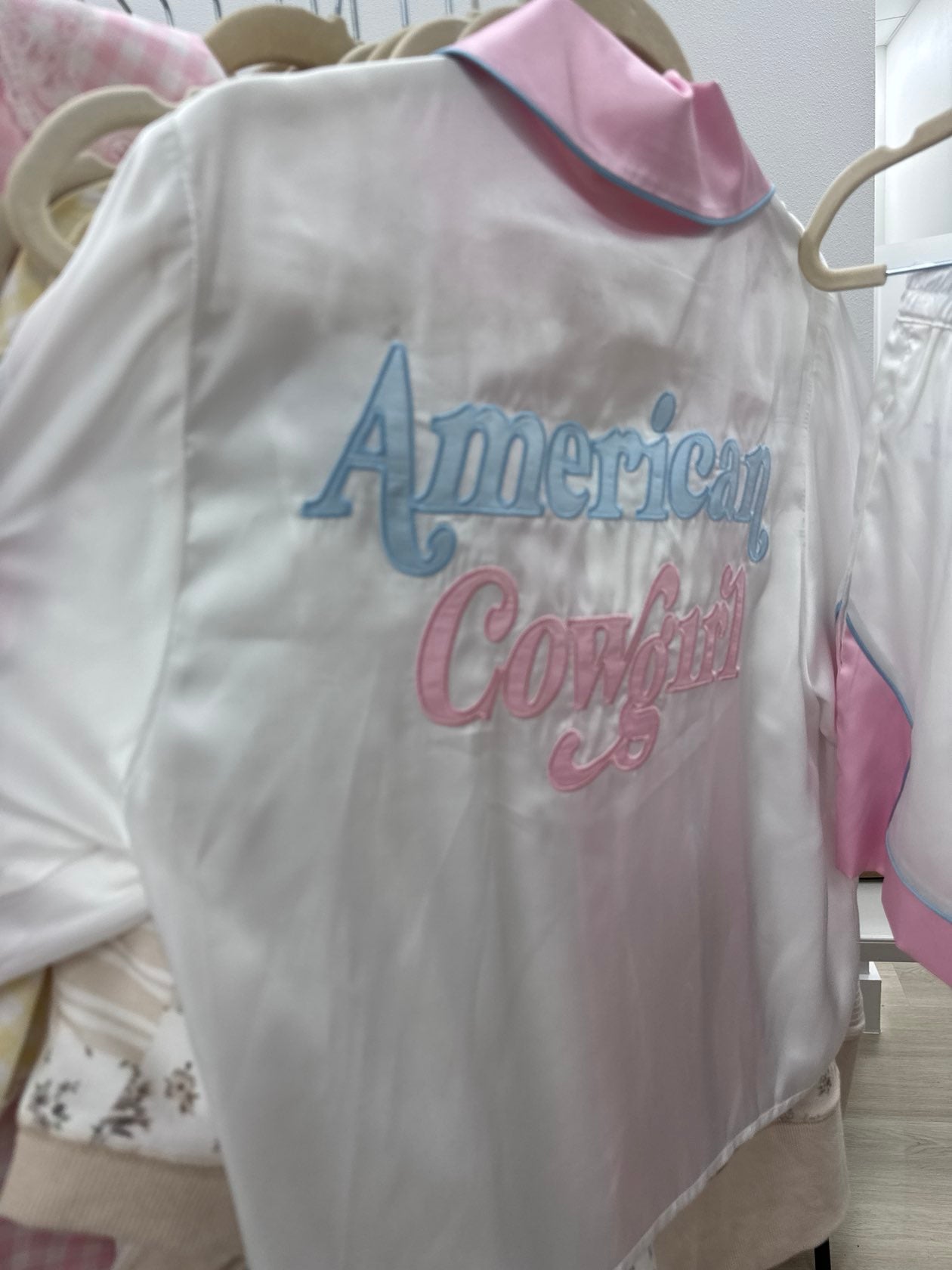 American Cowgirl Satin Pajama Set – Off White & Light Pink