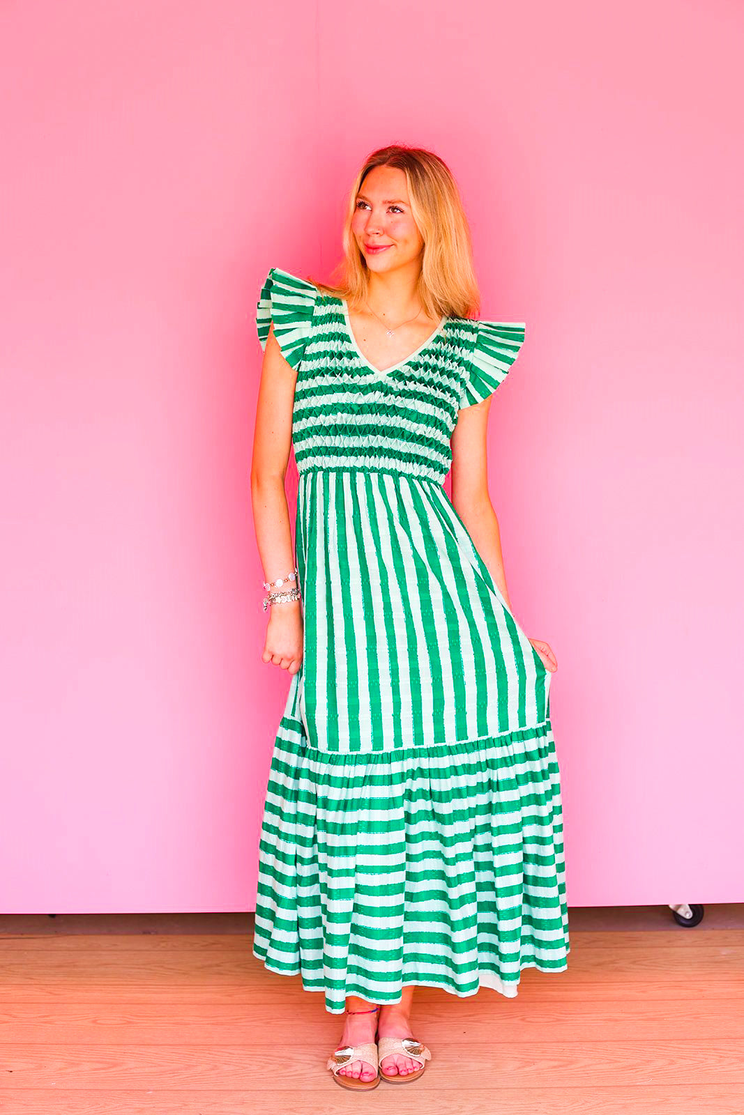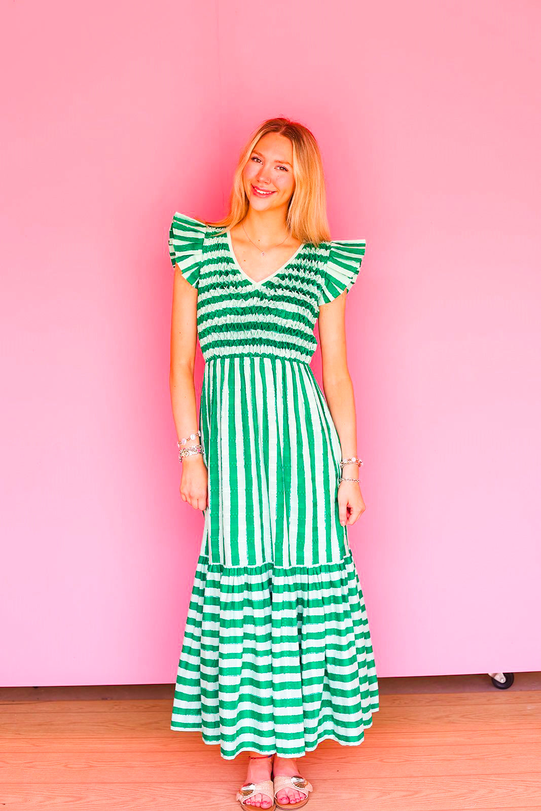 Emily McCarthy Grace Maxi - Mist Green Stripe