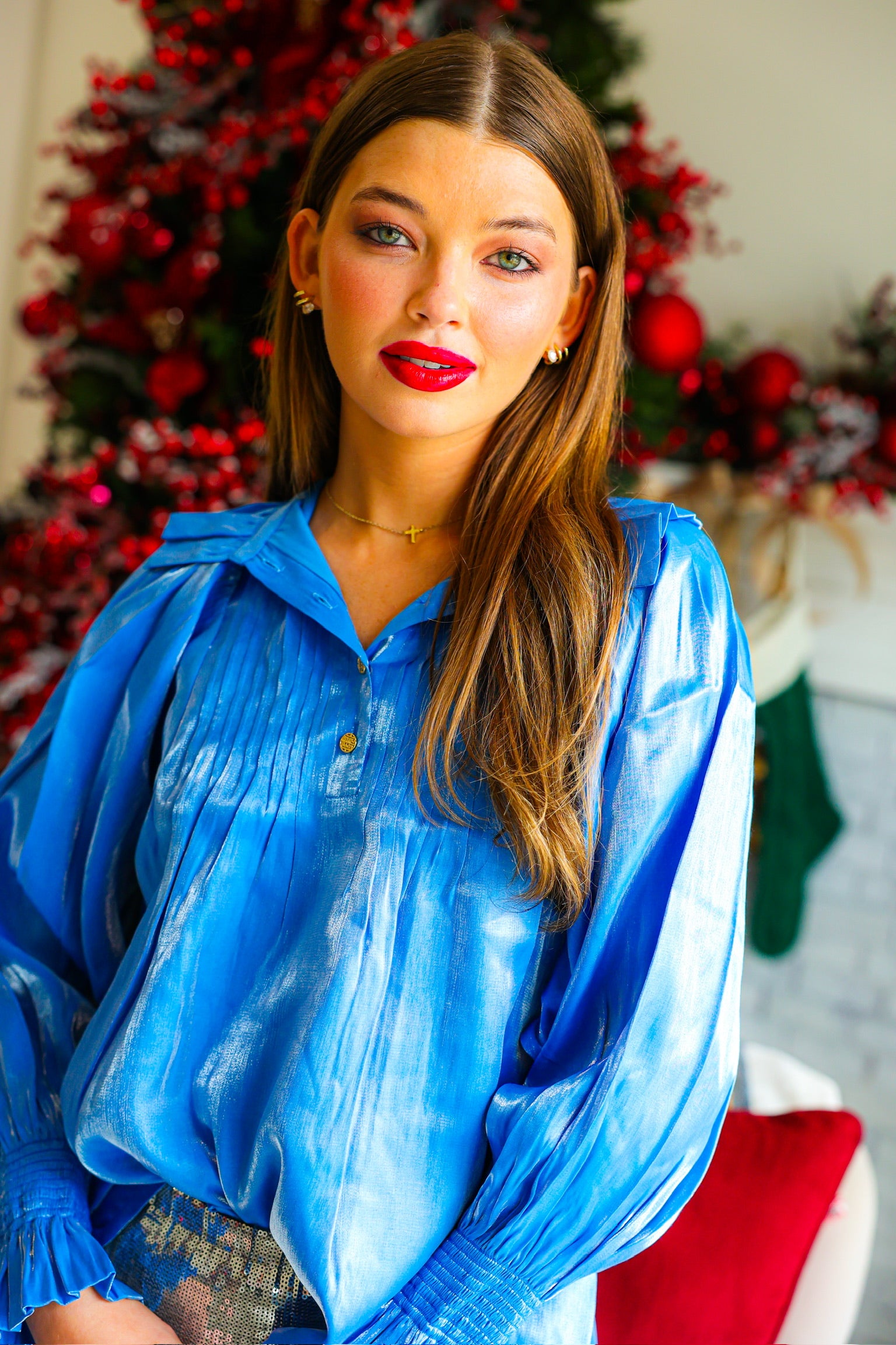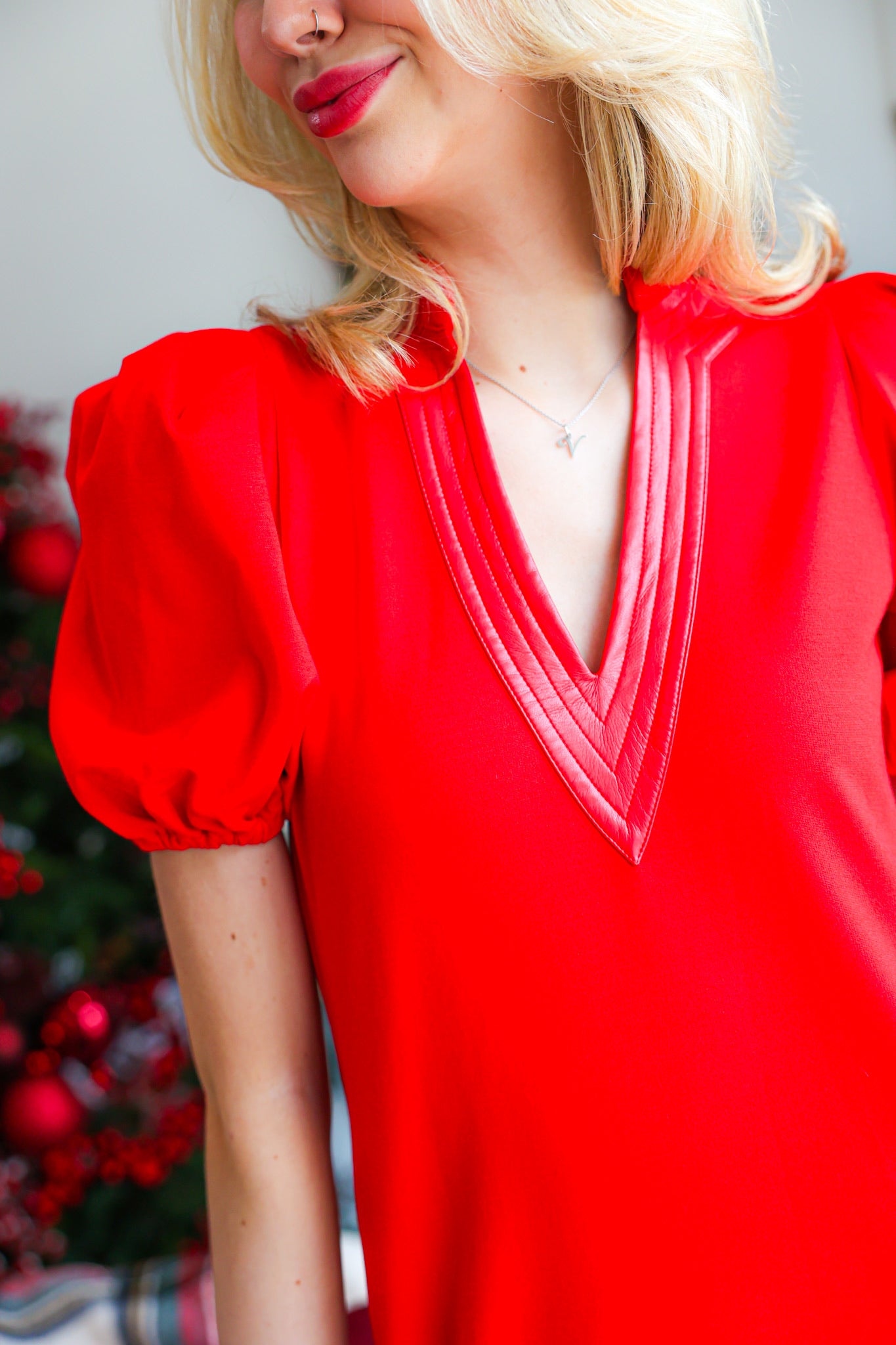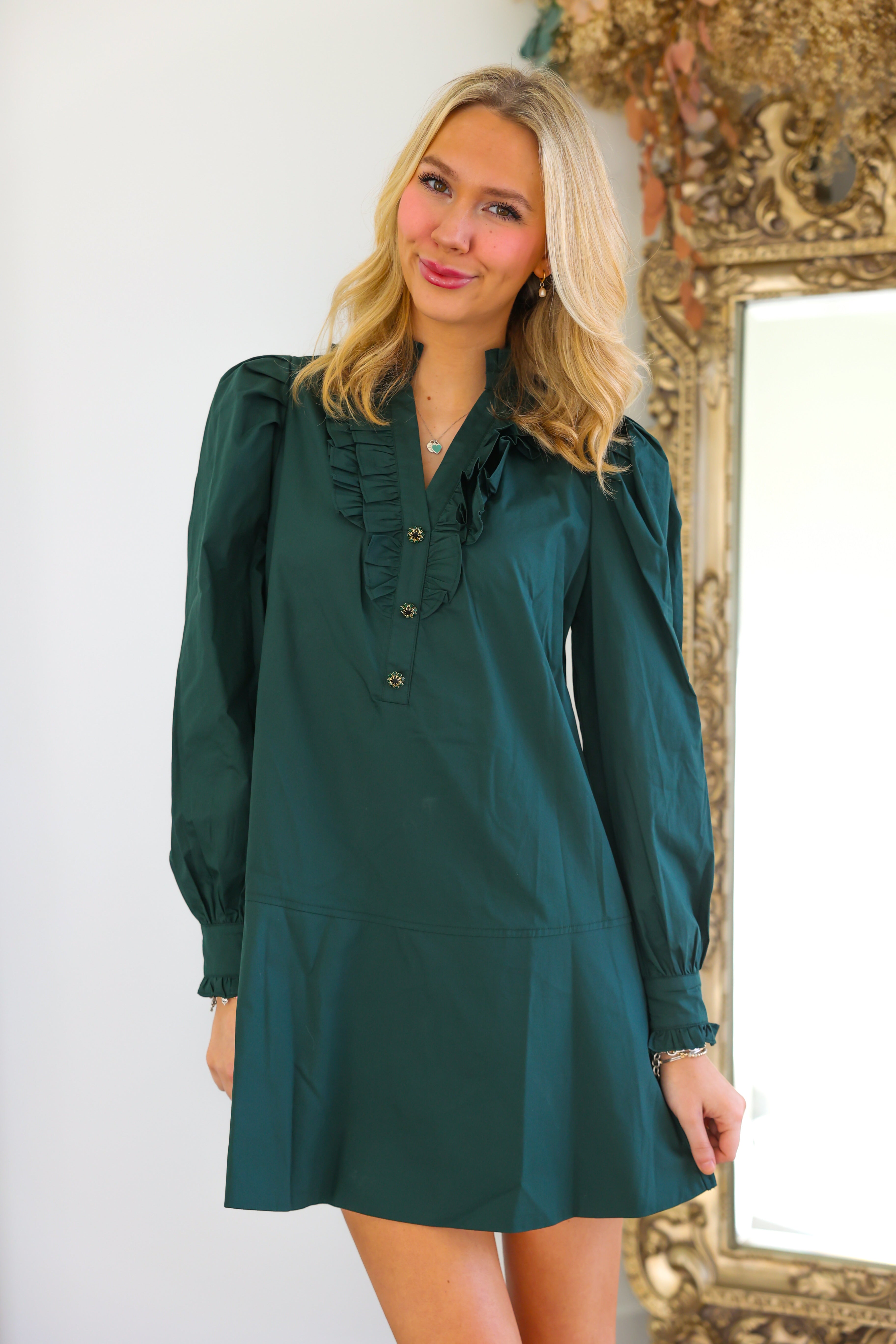 Emerald Green Ruffle Collar Mini Dress with Long Puff Sleeves – Chic Holiday Party Dress