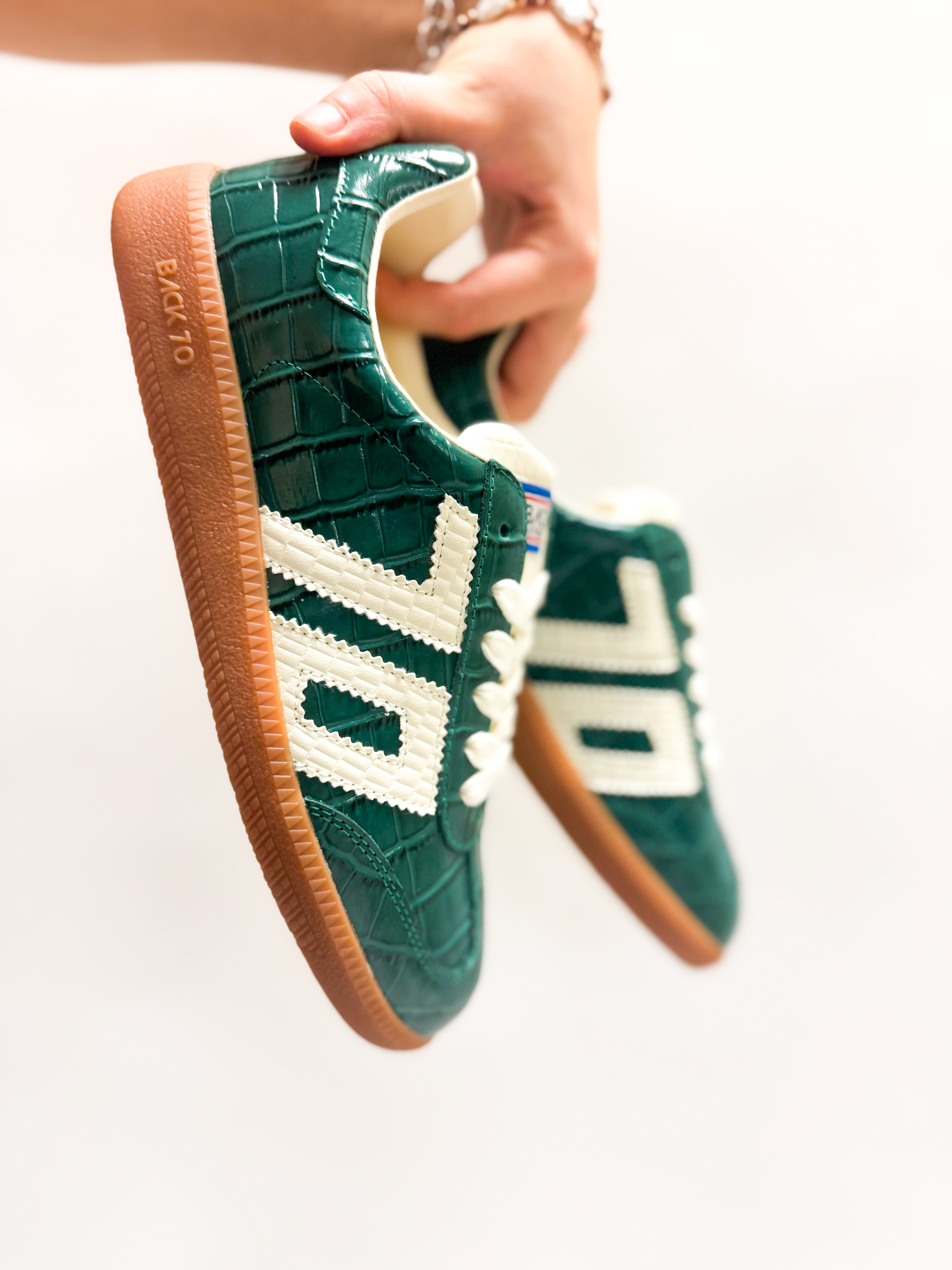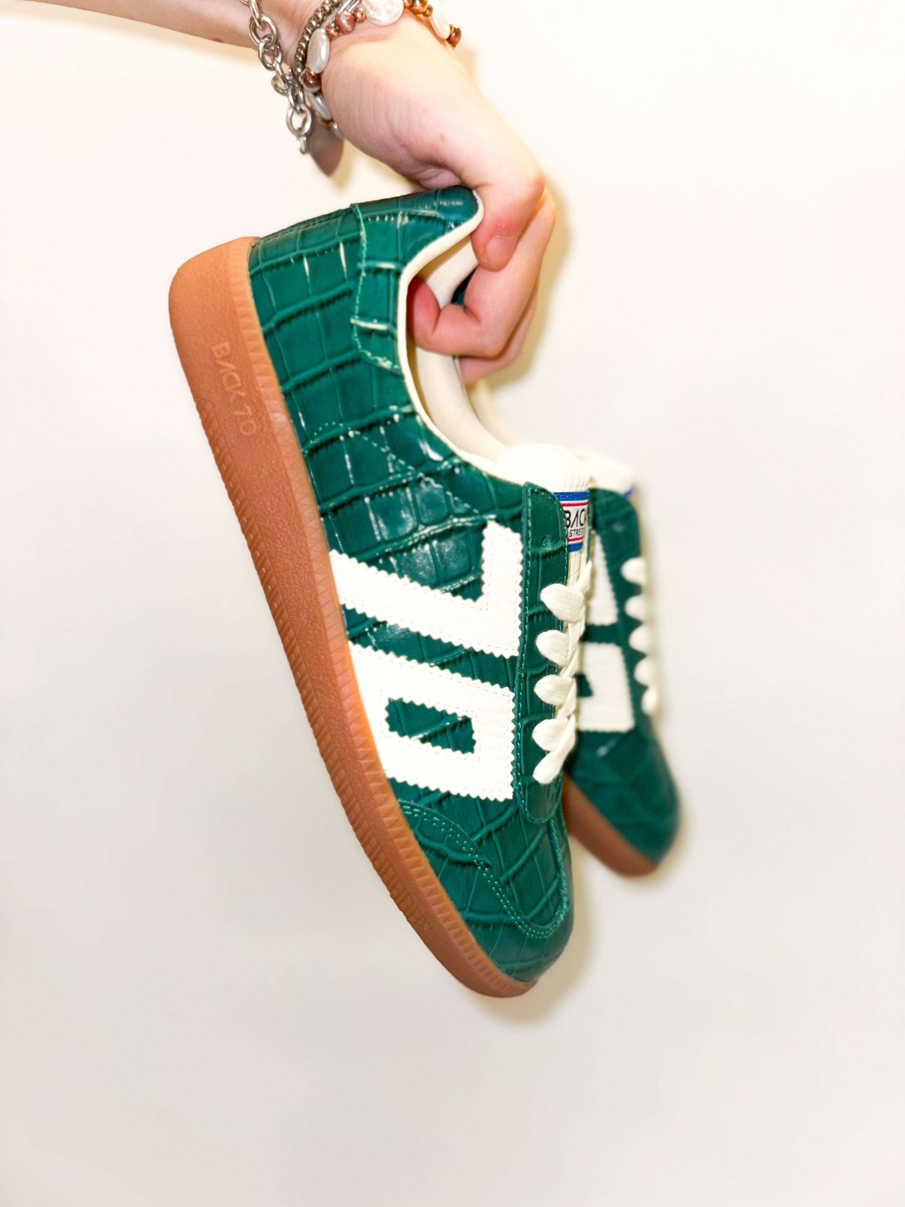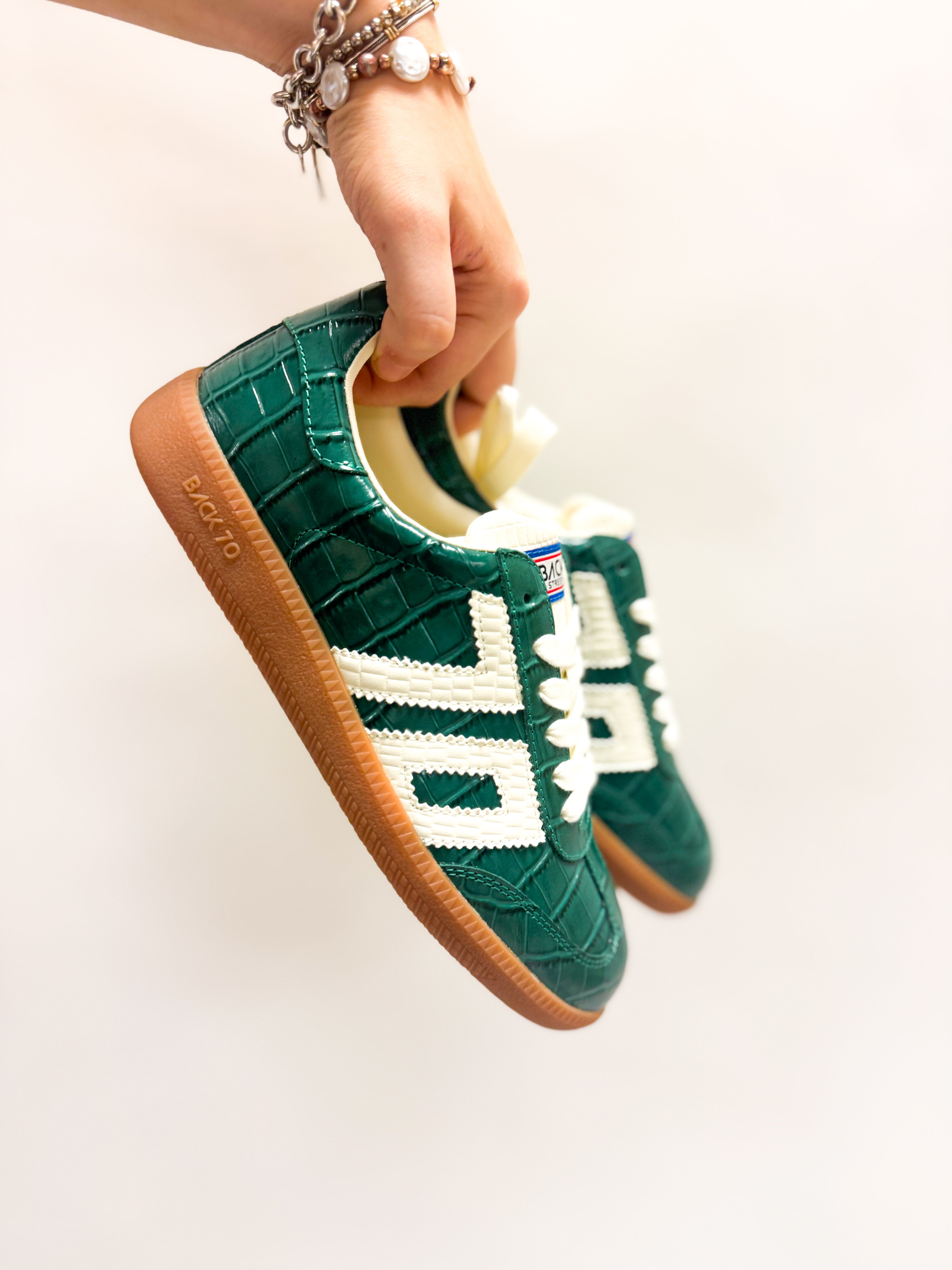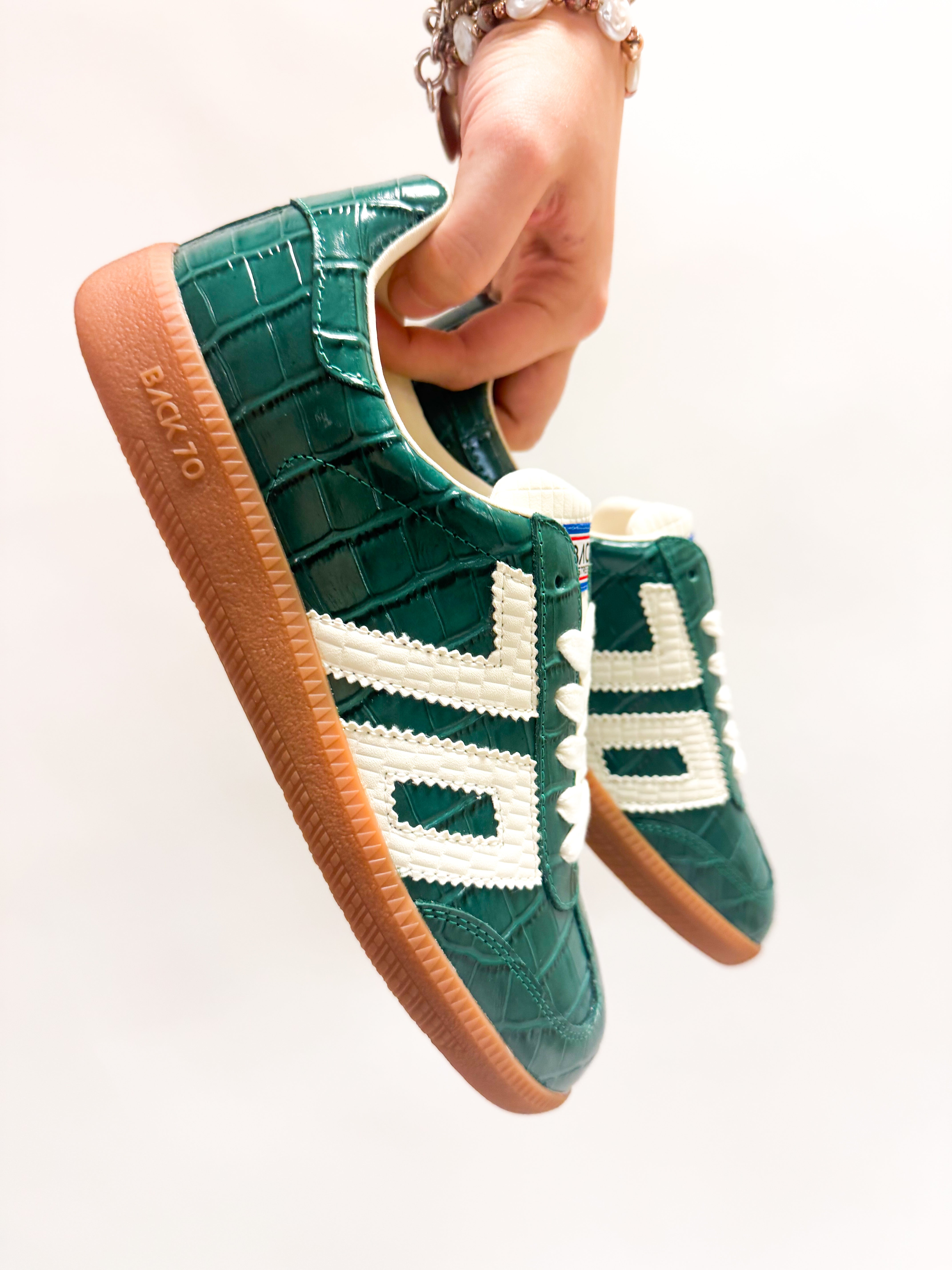 Cloud K brings bold energy with a luxe twist-crafted in genuine leather embossed with croc texture and dripping in rich jewel tones. If there were a diamond-clad bowling alley, we'd so be there. This elevated sneaker balances playful nostalgia with high-fashion edge. The vintage gum sole and iconic Back 70 mark ground it in boutique cool, while the croc finish steals the spotlight. Perfect for women looking for standout fashion sneakers that mix statement style with Italian craftsmanship.