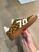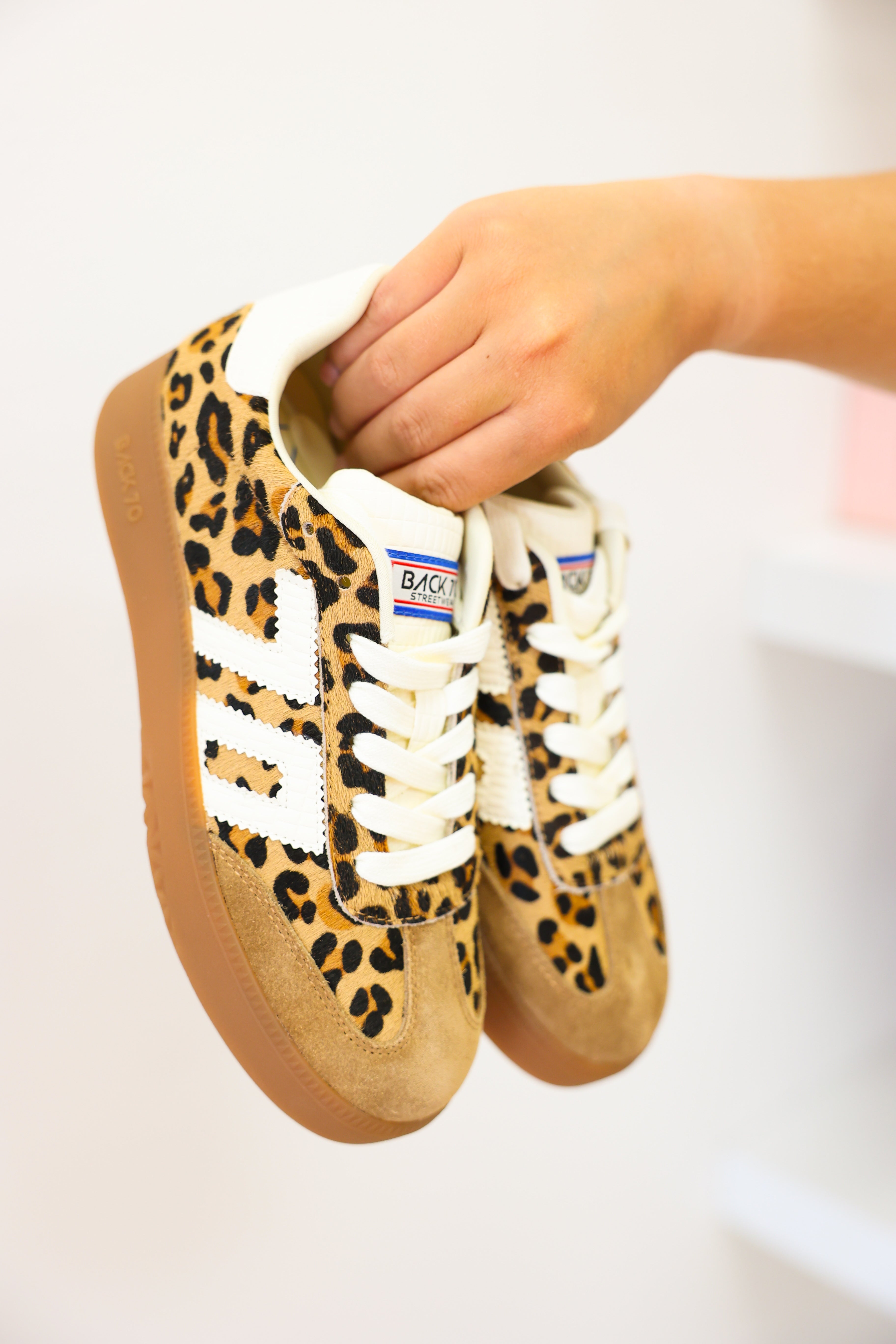Claim this season's biggest print trend with the Boston P platform leopard sneakers. Designed with a lifted gum rubber sole for just the right boost (and all the nostalgic vibes), these genuine leather, leopard print kicks are the new `it's complement to your wardrobe of essentials. Featuring the signature Back 70 icon in soft white and a soft suede leather toe cap, Boston P serves up vintage soccer vibes with a high-end fashion twist.