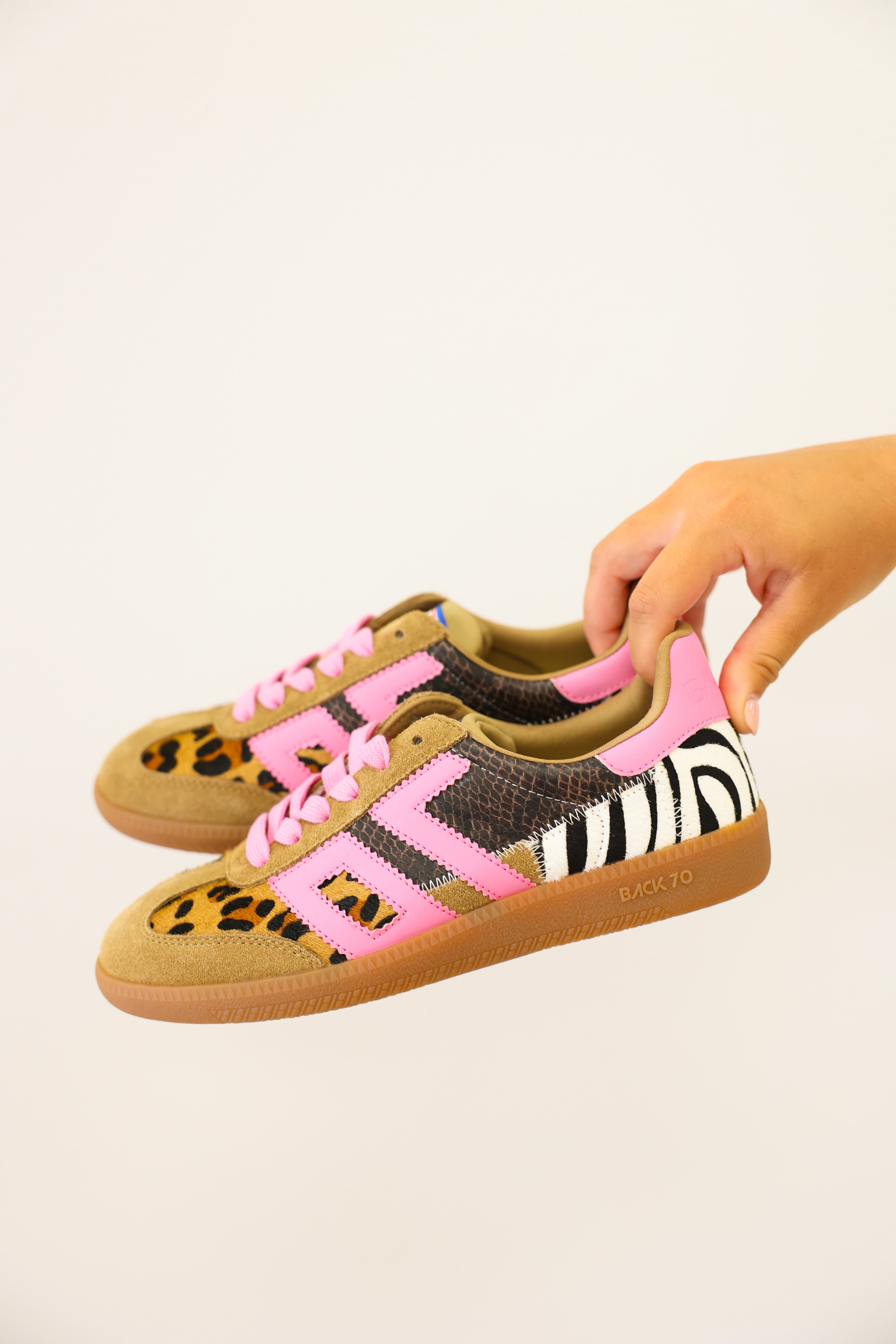 Say hello to the boldest iconic sneakers of the season. Animal print always makes a statement, and Squid takes it to the next level with a patchwork of rich leathers and a distinctly girly punch featuring Back 70's signature vintage icon in bright lipstick pink. If fashion were time, this is the moment you've been waiting for!