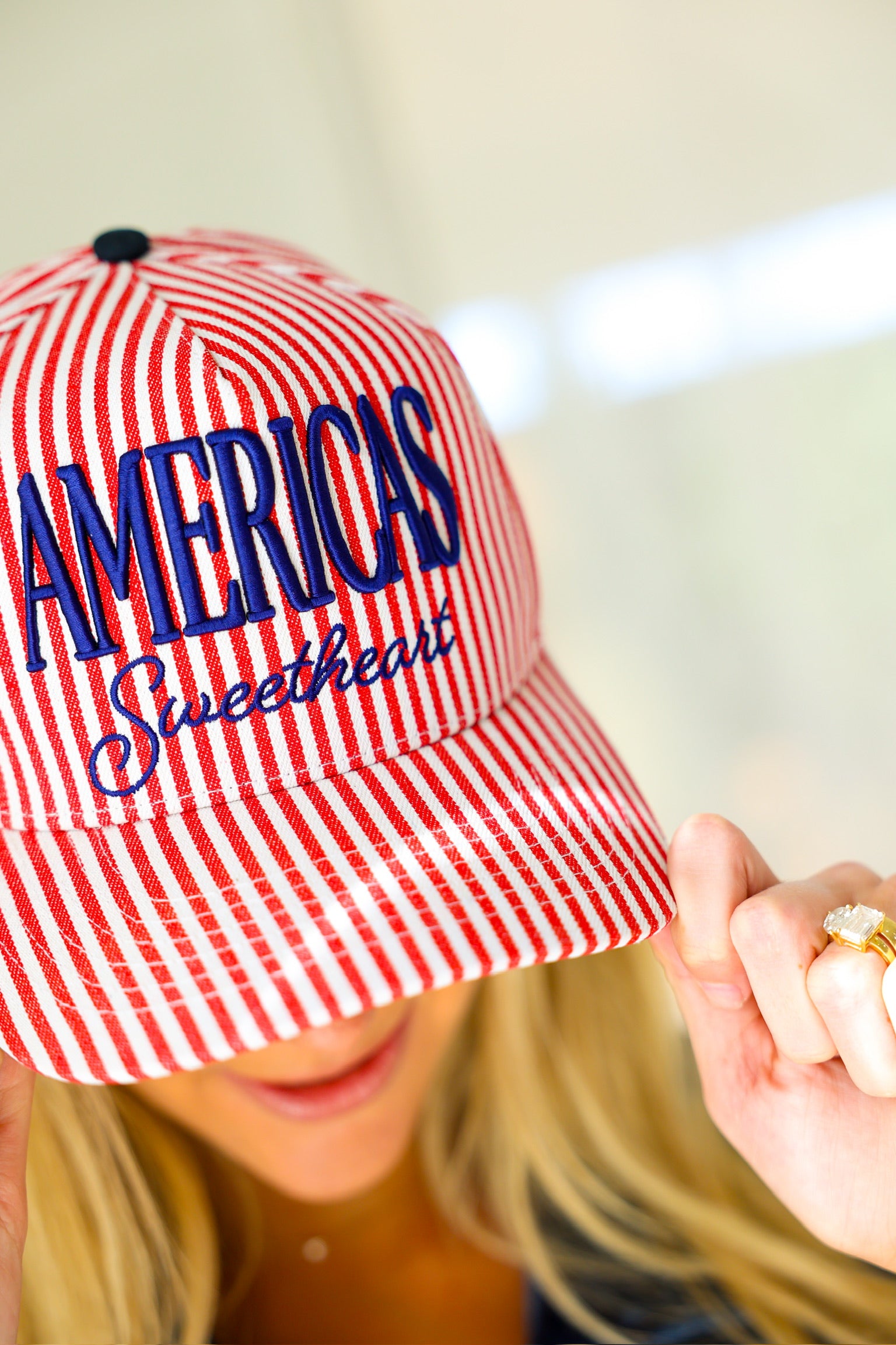 America's Sweetheart Striped Trucker Hat