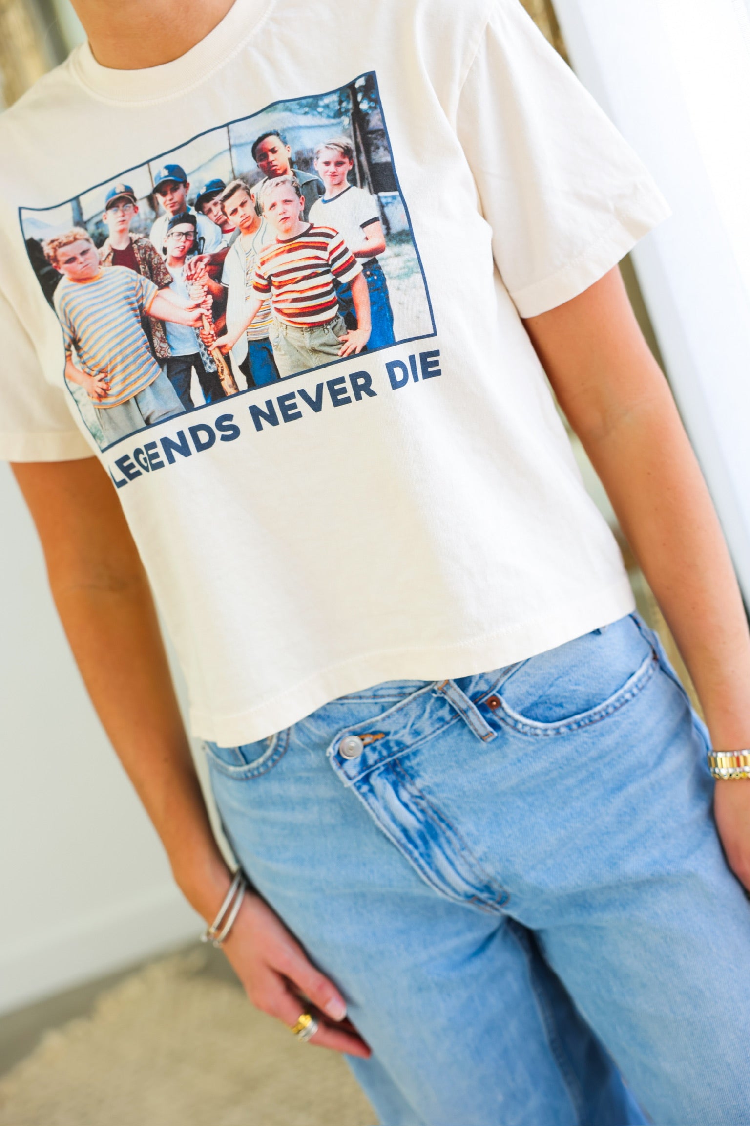 The Legends Never Die Crop Tee is a bold, vintage-inspired staple with a modern edge. With a cropped length and statement graphic, this tee brings instant cool to any outfit.