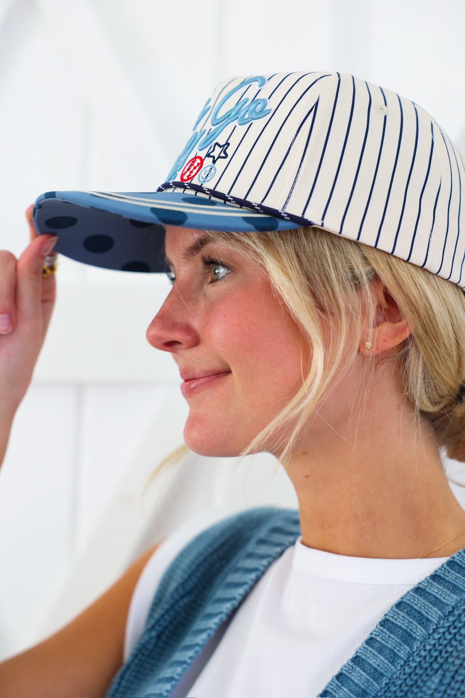 Playful polka-dot brim