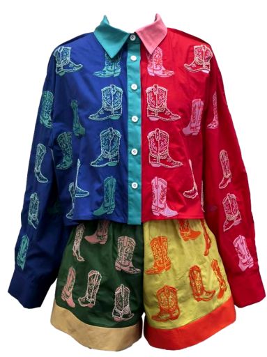 Colorblock Boot Button Up Long Sleeve Top Queen of Sparkles