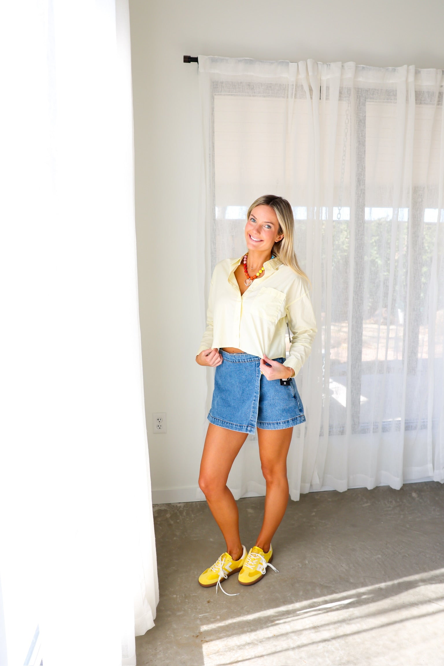 Pair it with your favorite denim and sneakers for an easy daytime look, or front-tuck it into tailored shorts or trousers for brunch, errands, or casual Fridays. Add sandals and gold jewelry for a warm-weather vibe.