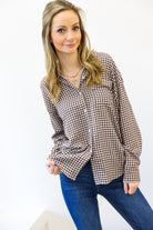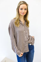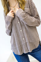 Add timeless charm to your wardrobe with the Chocolate Cherry River Plaid Button Up. Featuring a rich chocolate cherry plaid pattern, this shirt combines classic style with modern comfort. Its crisp button-up design ensures a polished look, while the soft fabric offers breathable, all-day wear. Perfect for layering or wearing on its own, this versatile piece effortlessly elevates any casual or dressy outfit.