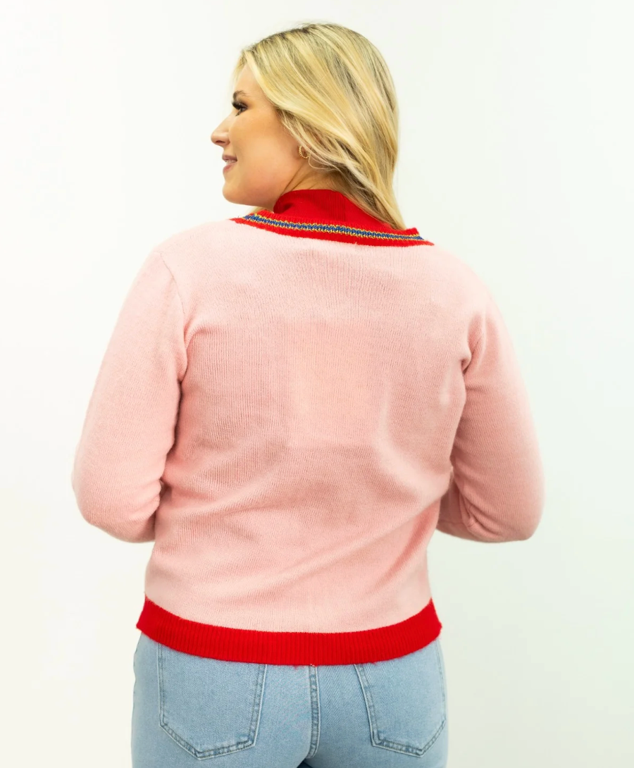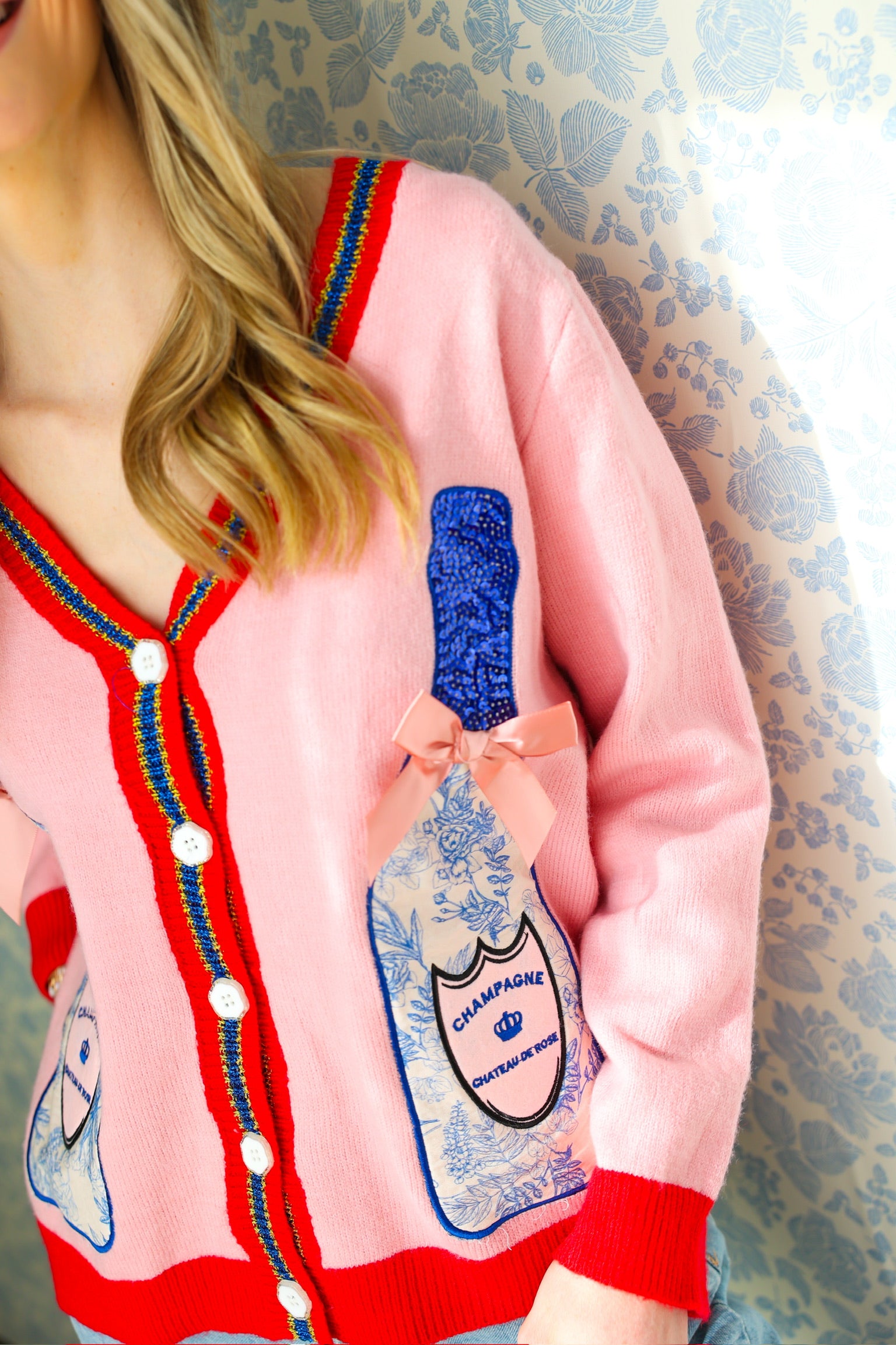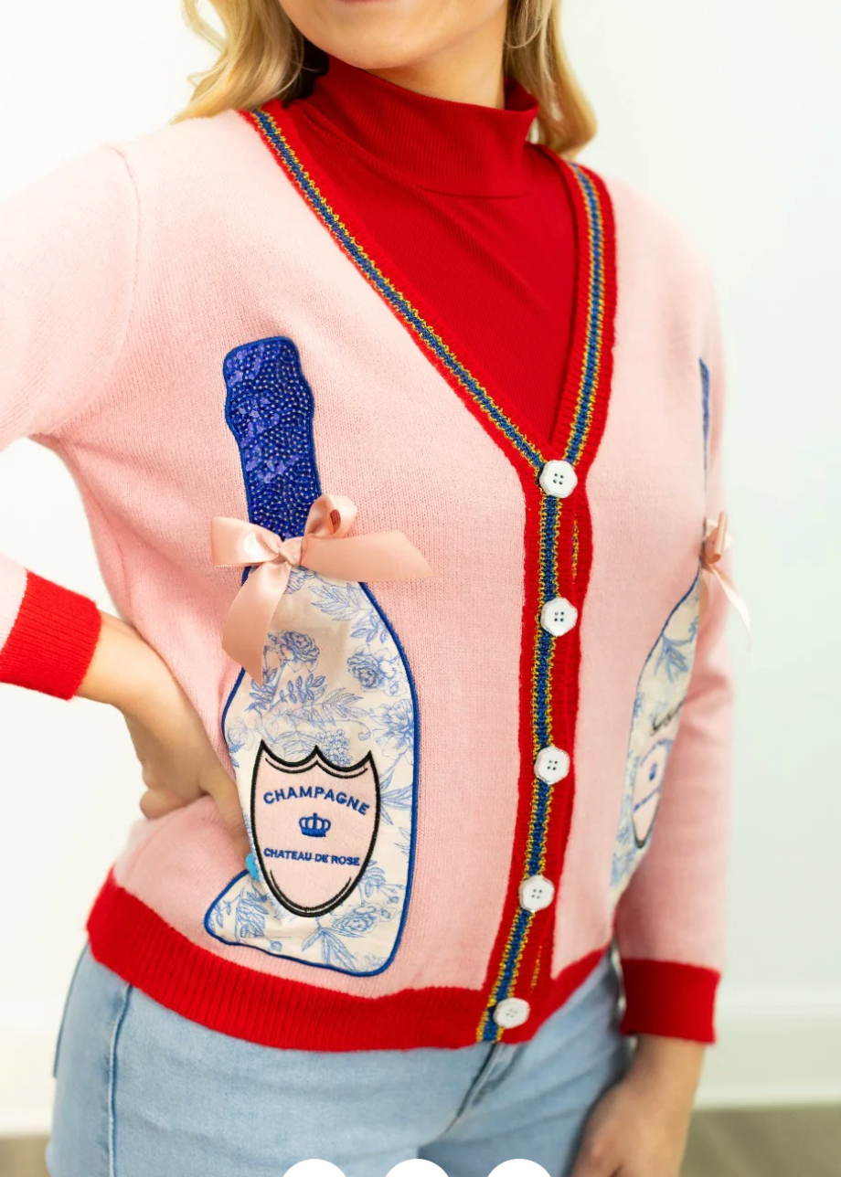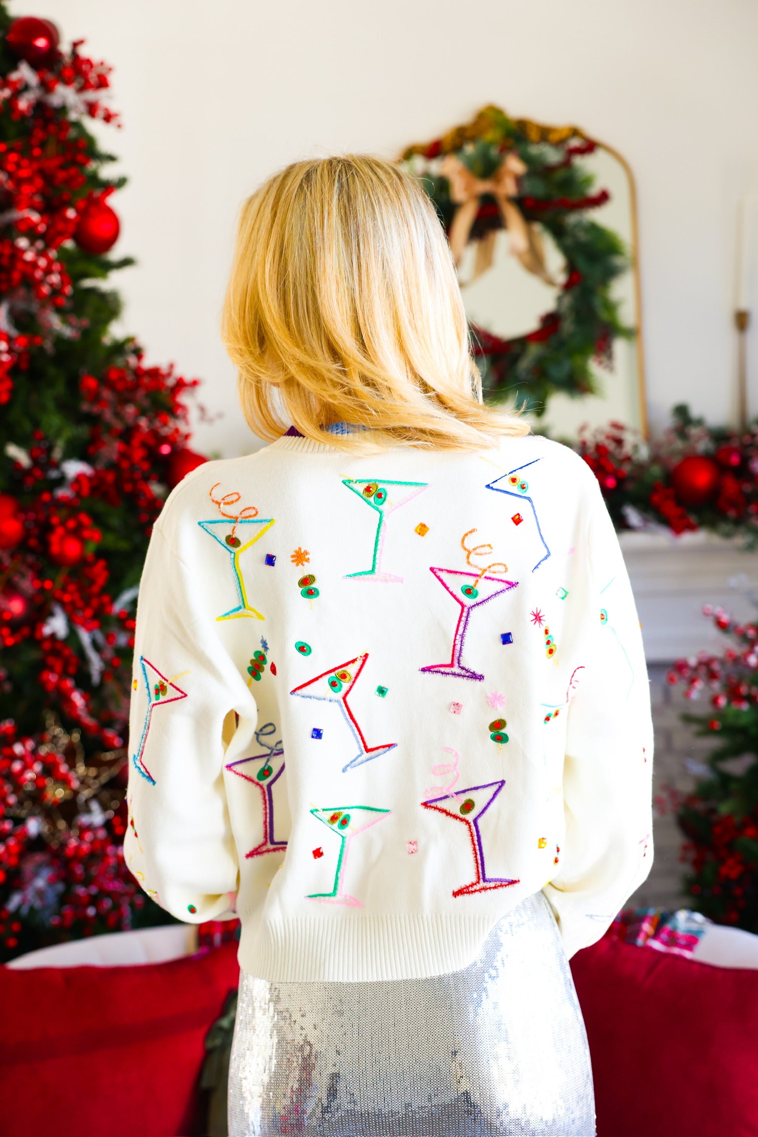 White Multi Cosmo & Martini Button Up Cardigan With Rainbow Trim Queen of Sparkles