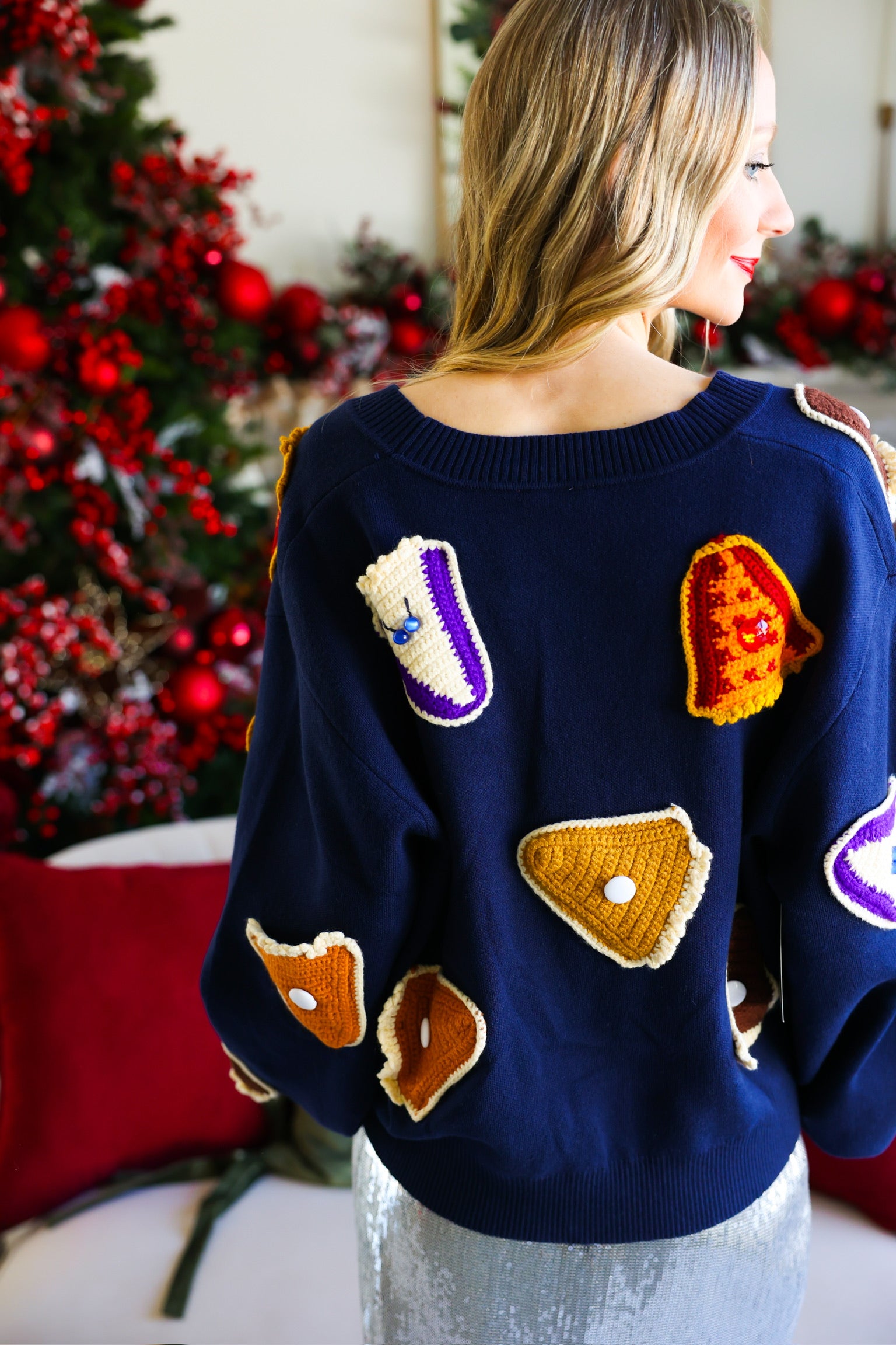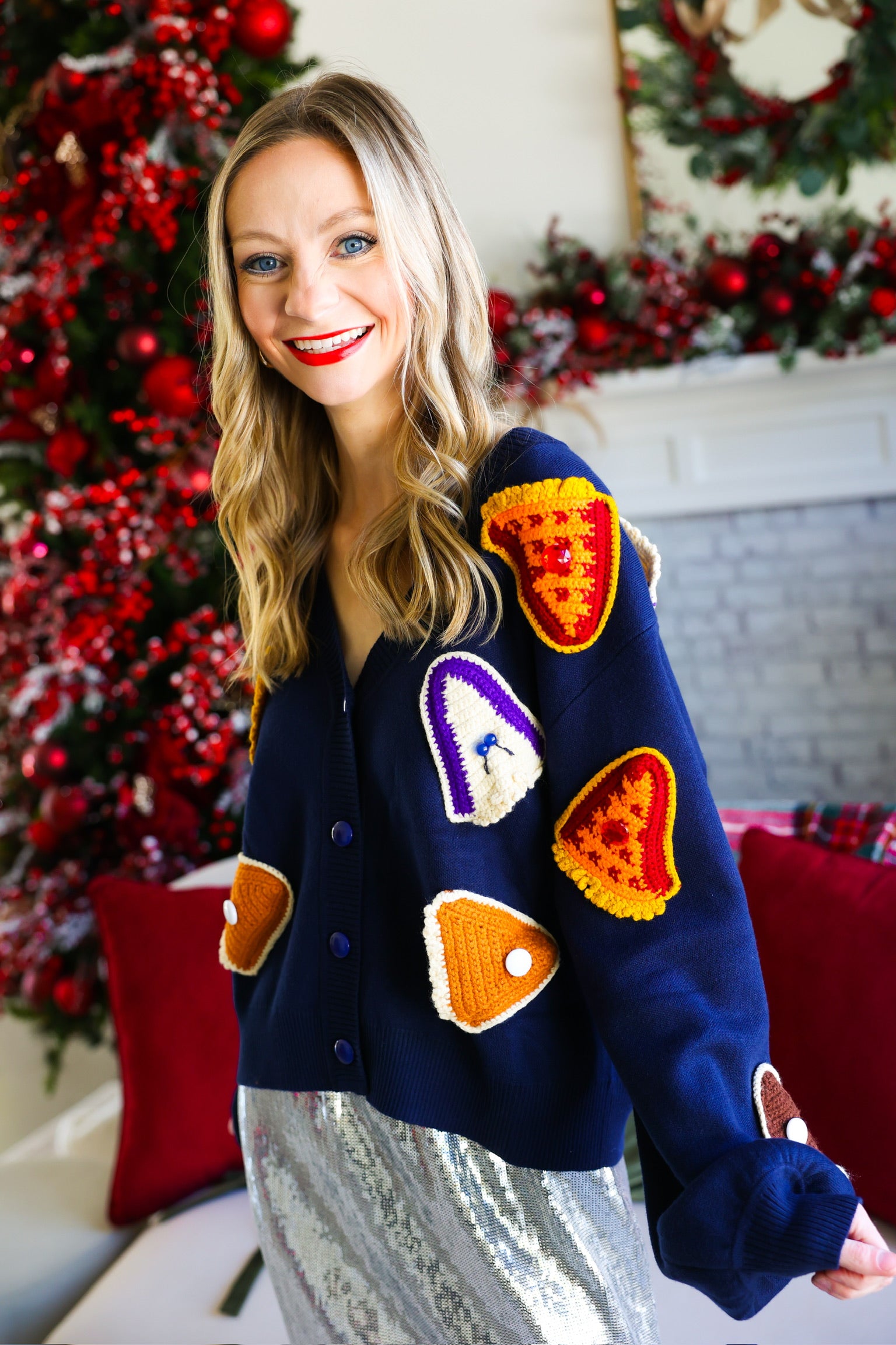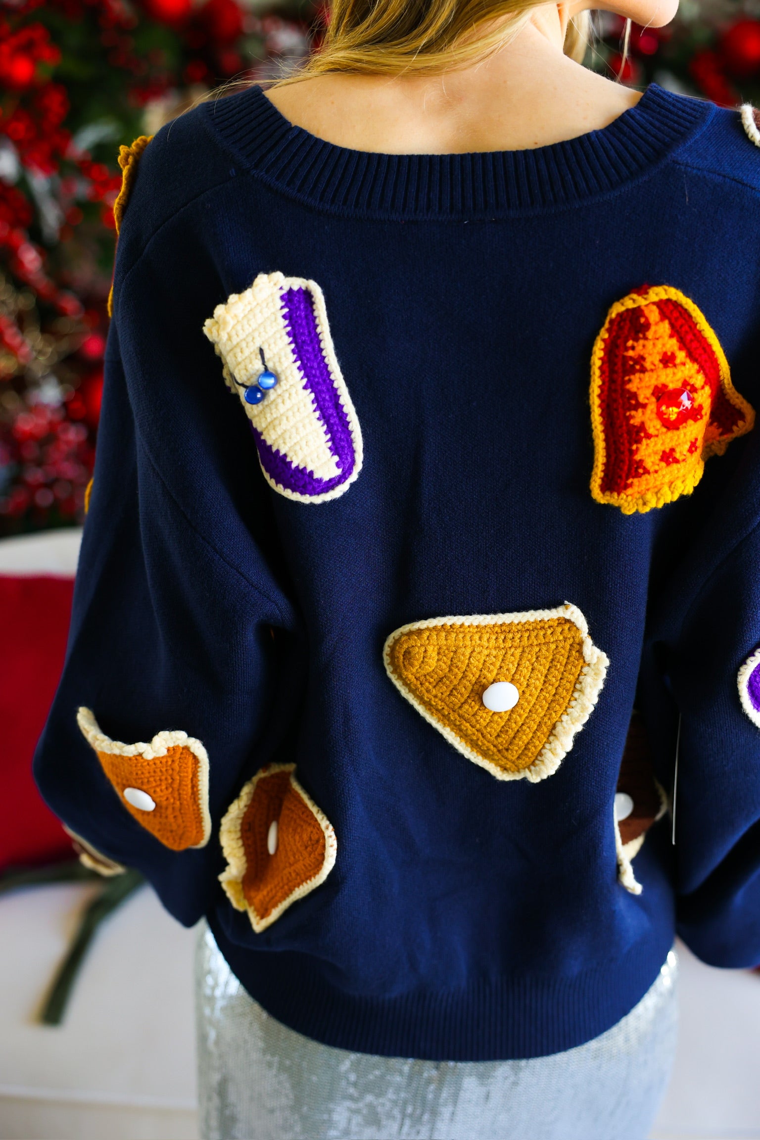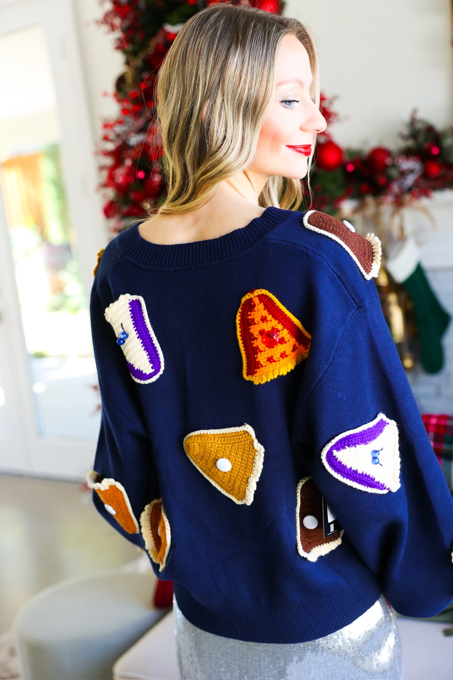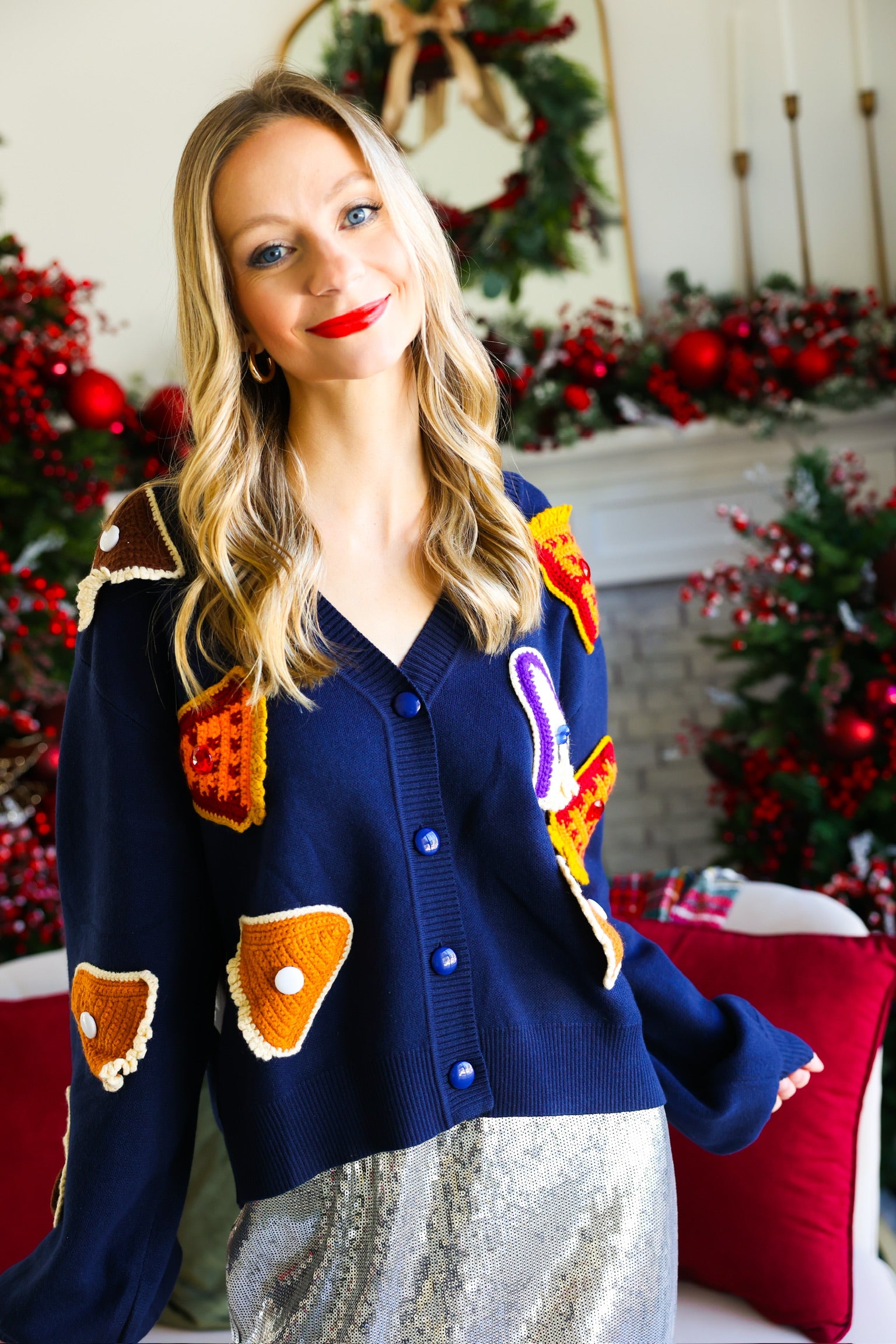 Navy Knit Pies on Plate Cardigan Queen of Sparkles