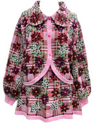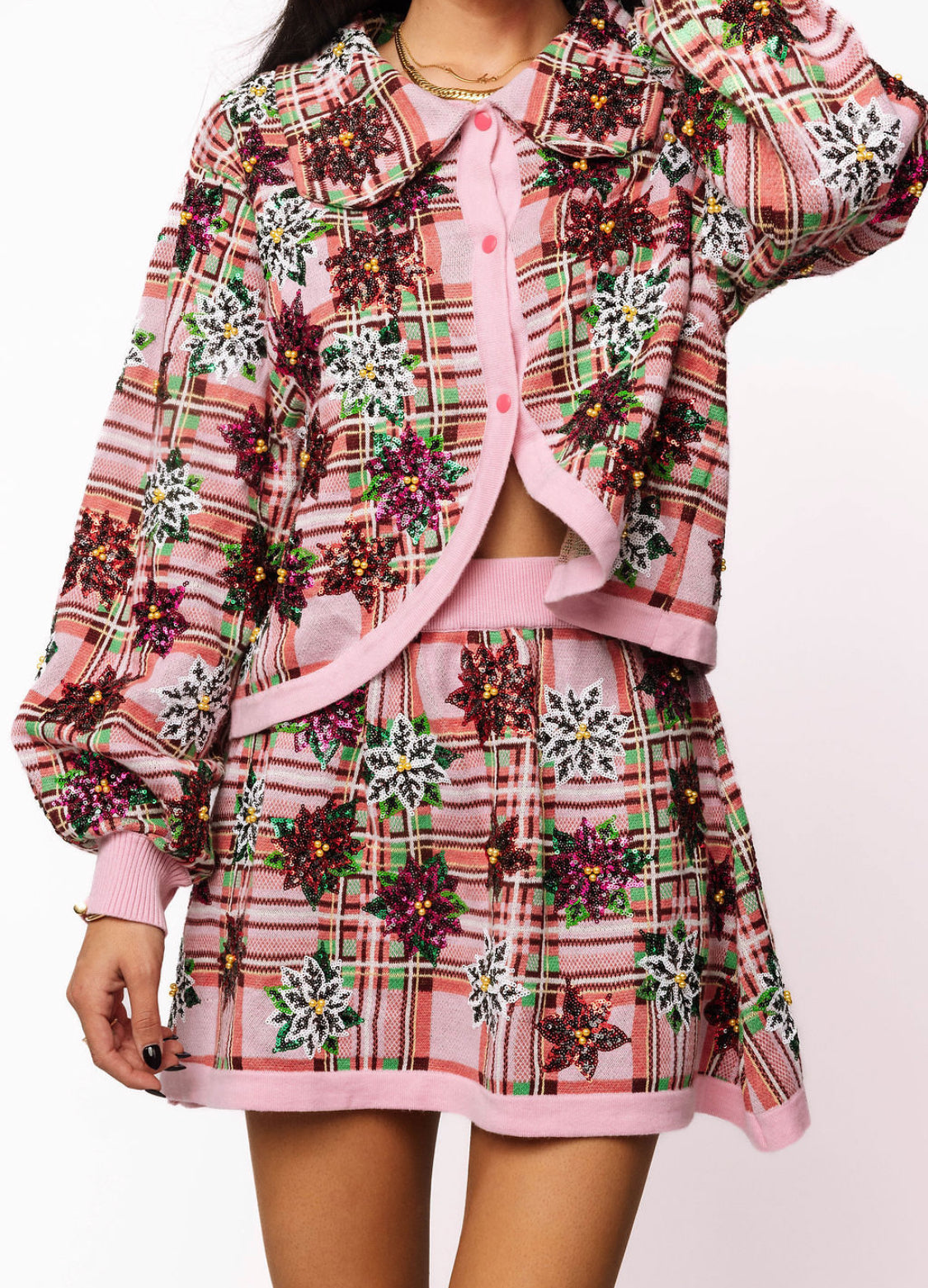 Pink Plaid Poinsettia Button Up Collar Sweater Queen of Sparkles