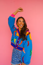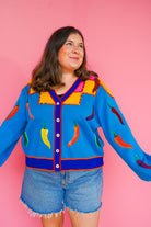 Royal Blue Multi Chili Pepper Cardigan Queen of Sparkles