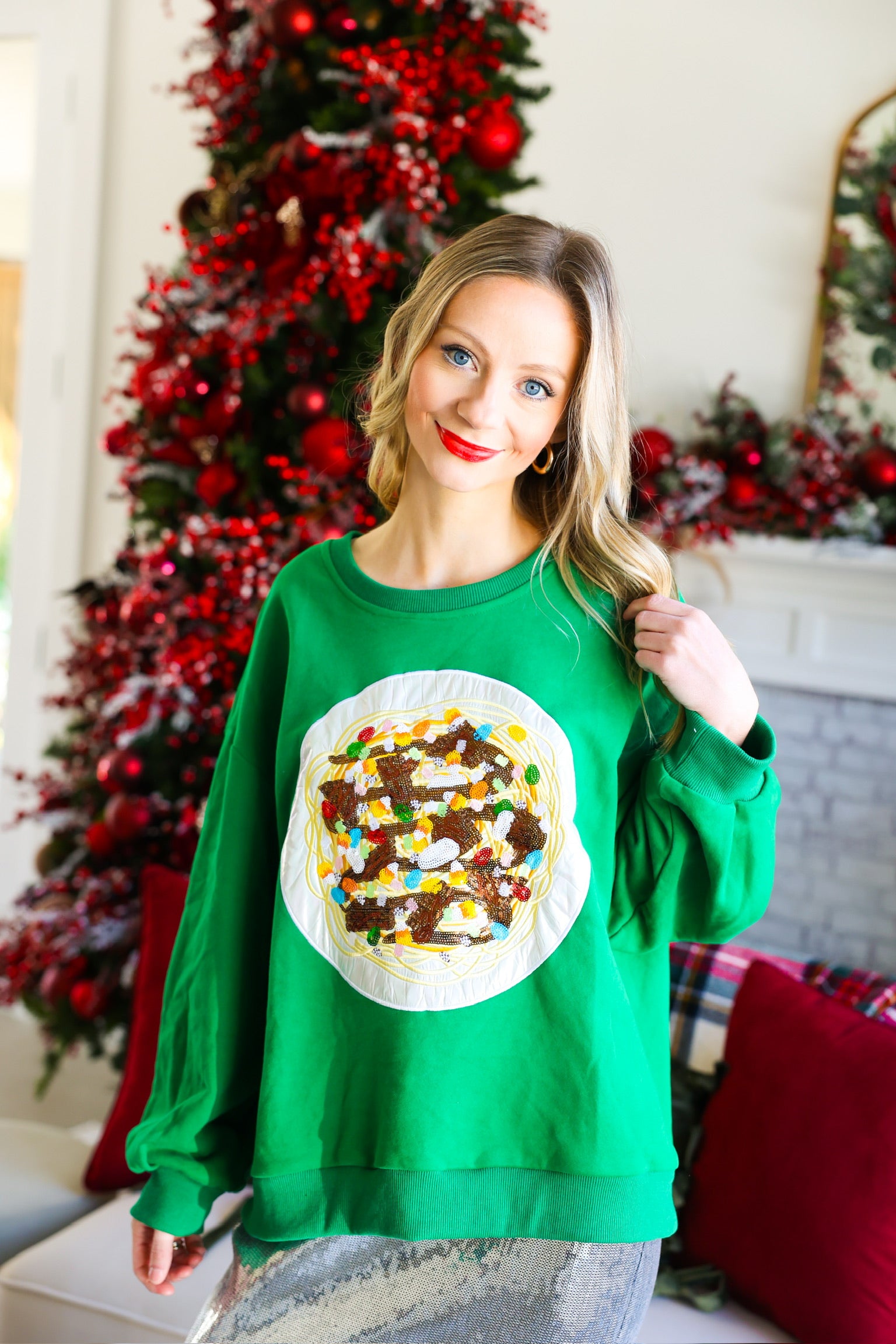 Green Elf Spaghetti Sweatshirt Queen of Sparkles