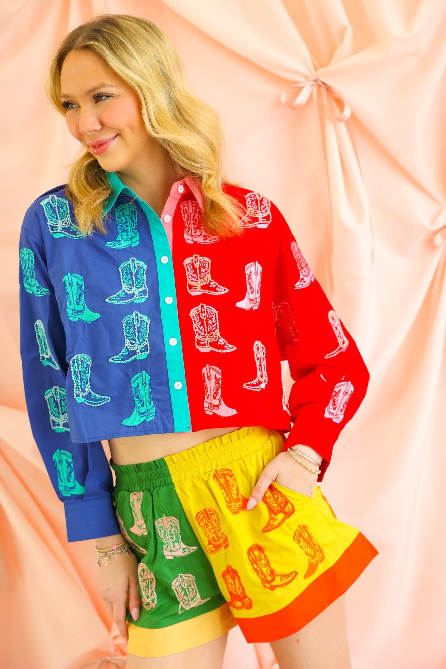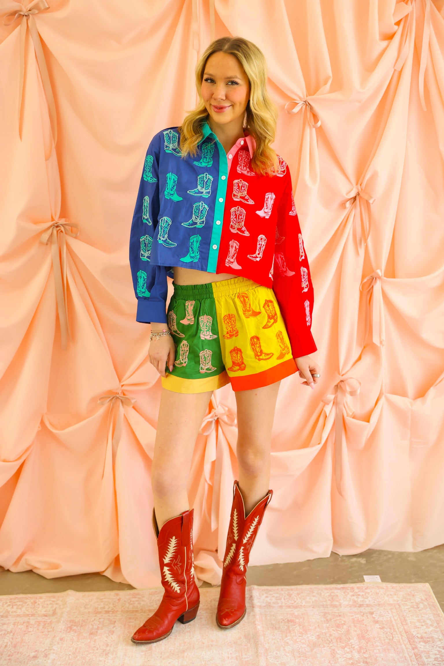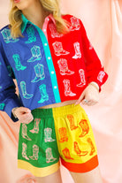 Colorblock Boot Button Up Long Sleeve Top Queen of Sparkles
