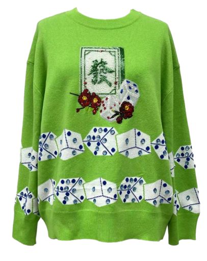 Green Mahjong Tile & Dice Sweater Queen of Sparkles