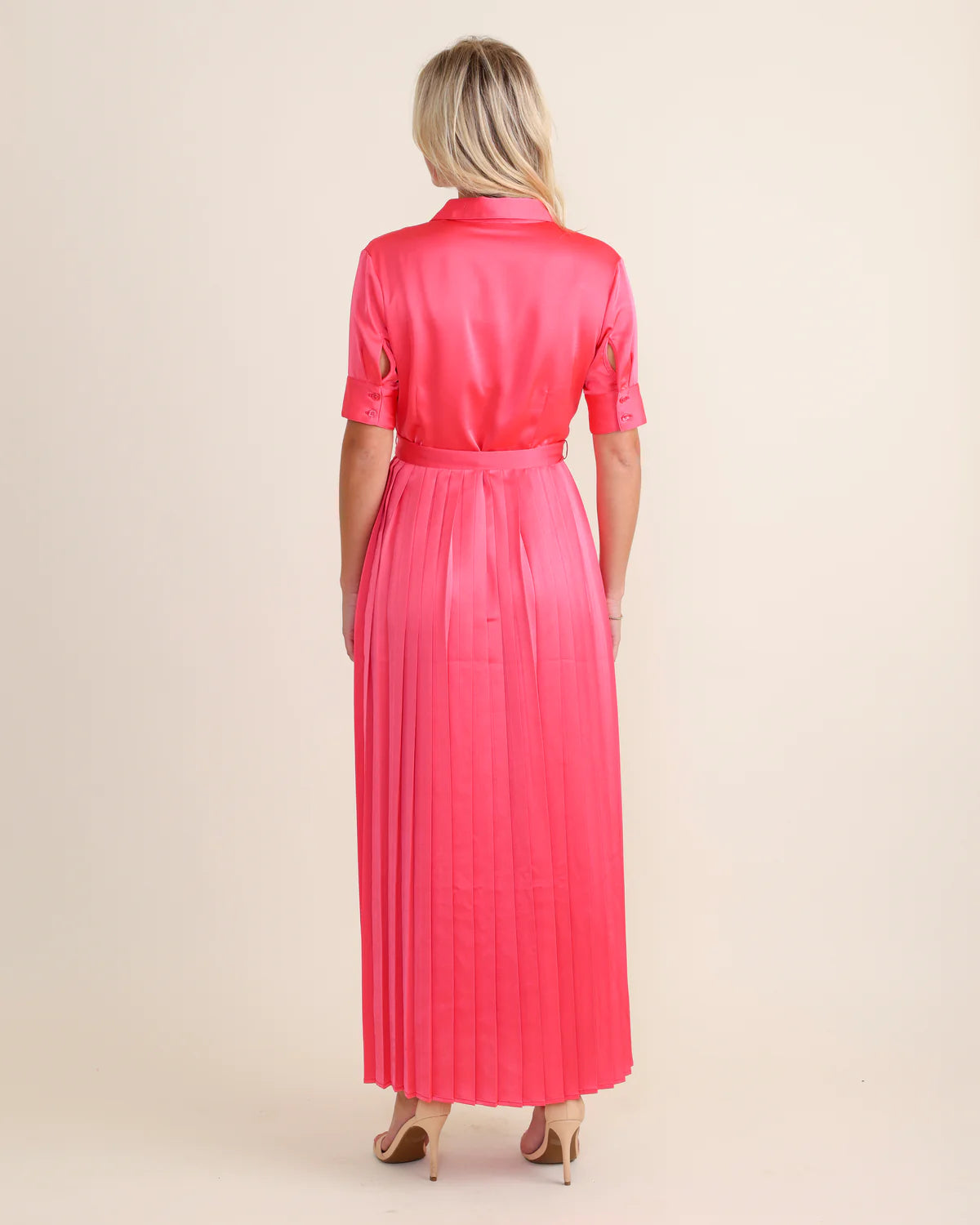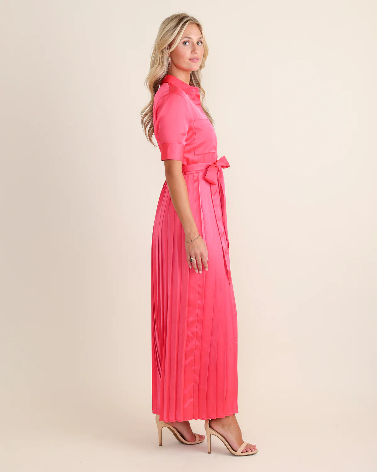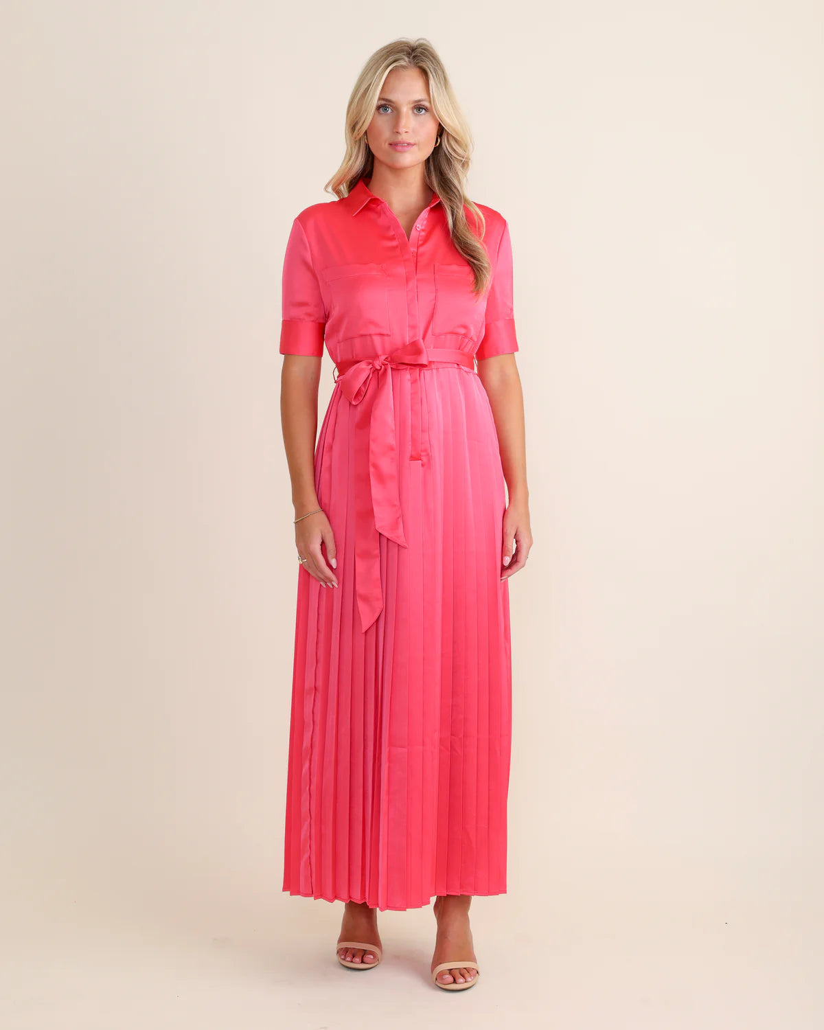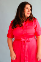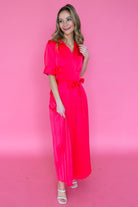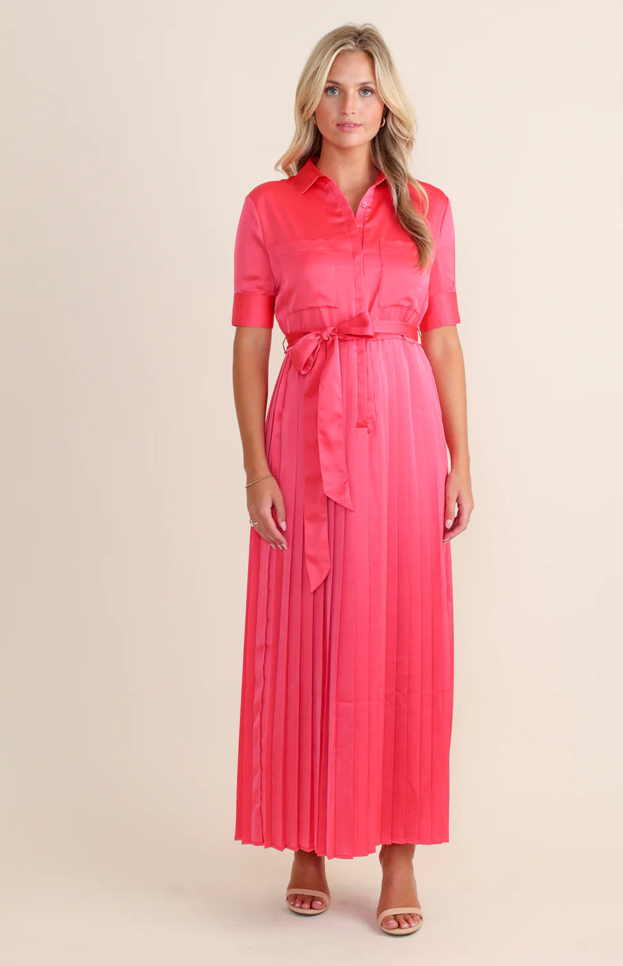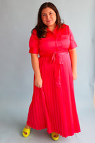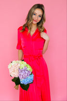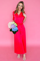 Get ready to turn heads in our Begonia Beckett Dress. This chic maxi dress in a stunning begonia color features an adjustable tie waist for a flattering fit and a pleated skirt for an elegant touch. Perfect for both day and night, this dress will make you feel confident and stylish!!