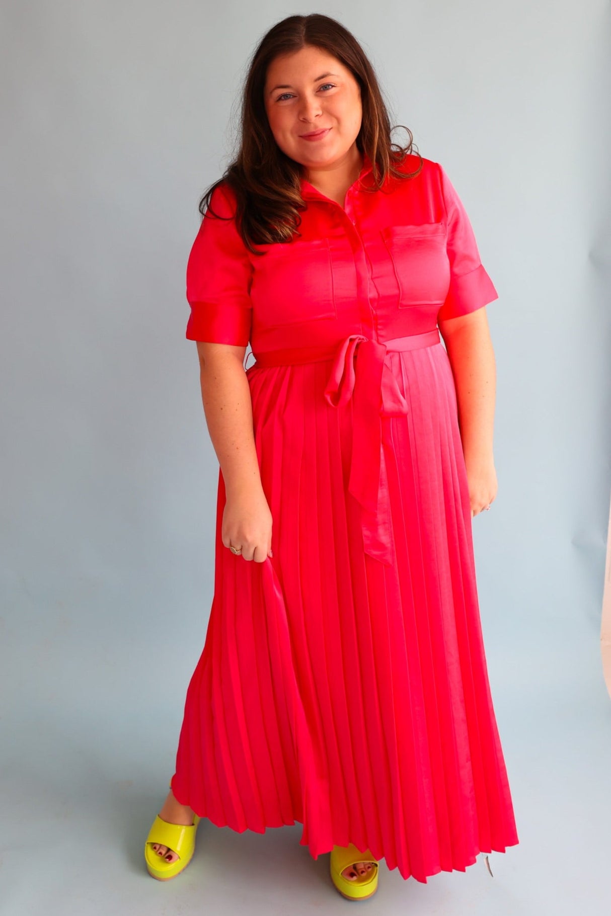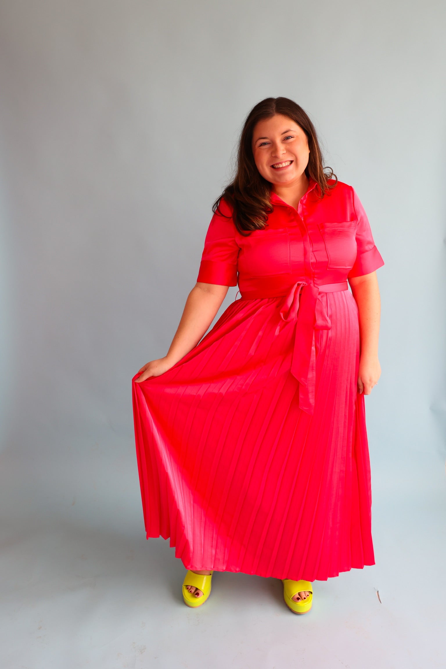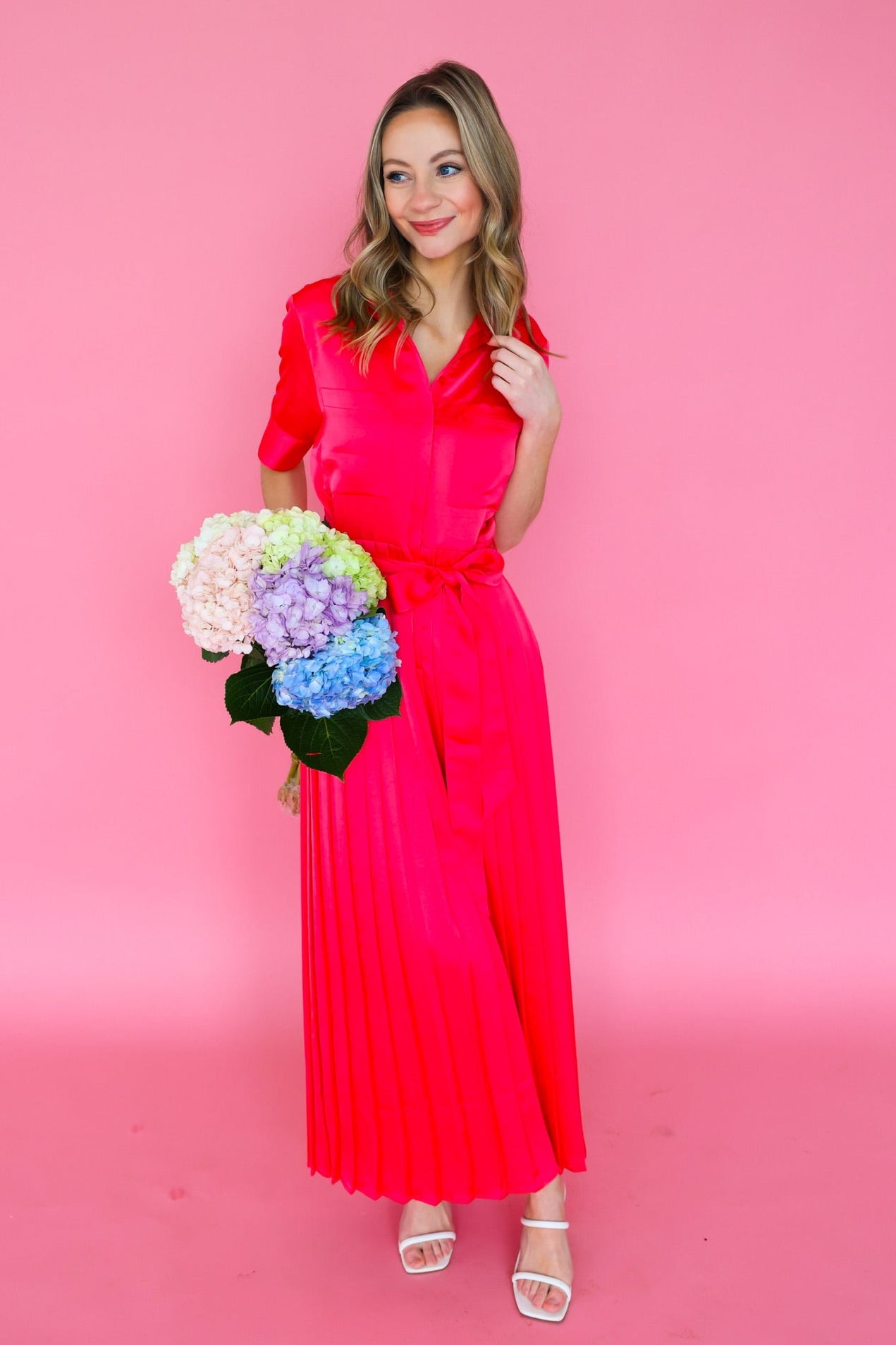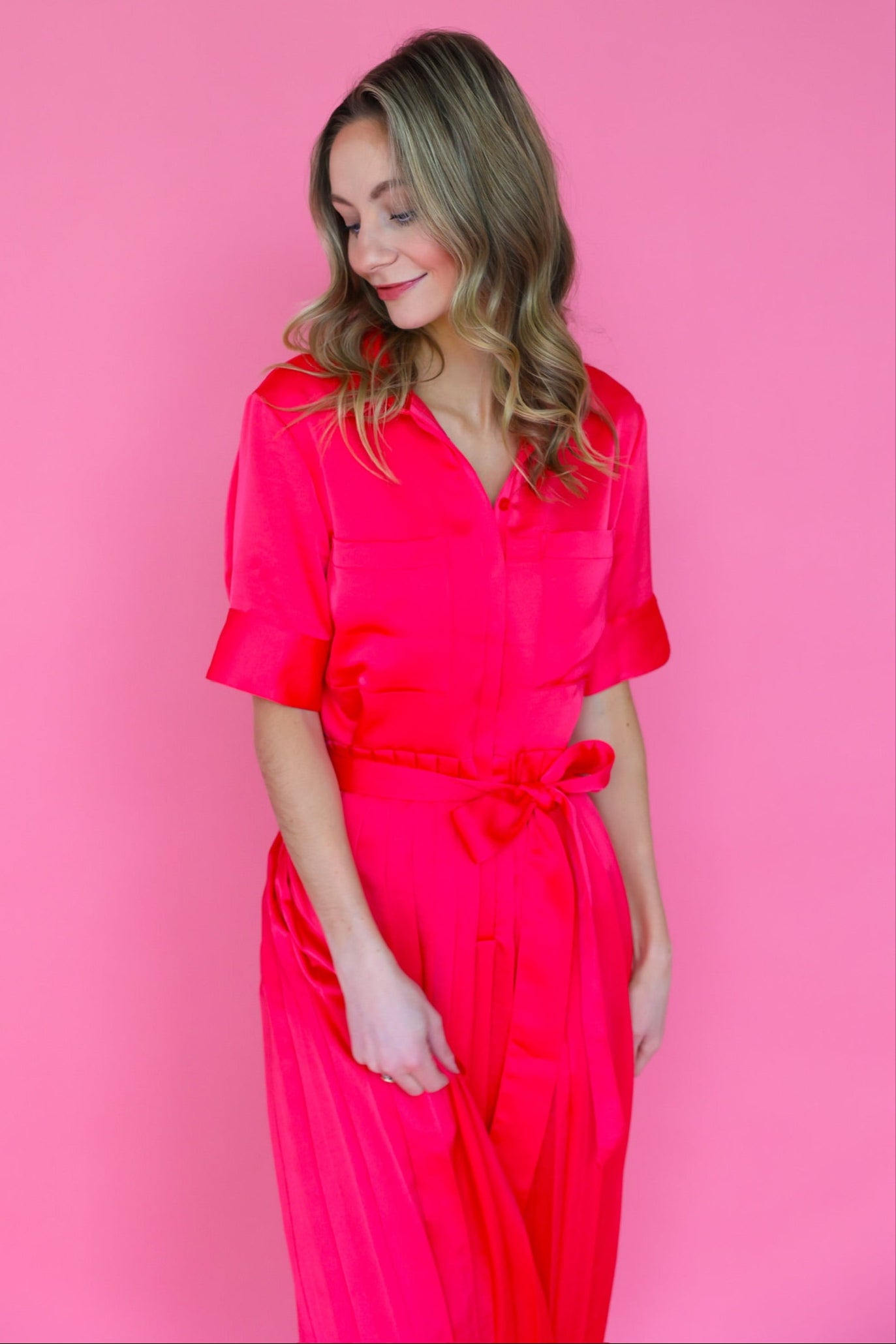 Get ready to turn heads in our Begonia Beckett Dress. This chic maxi dress in a stunning begonia color features an adjustable tie waist for a flattering fit and a pleated skirt for an elegant touch. Perfect for both day and night, this dress will make you feel confident and stylish!!