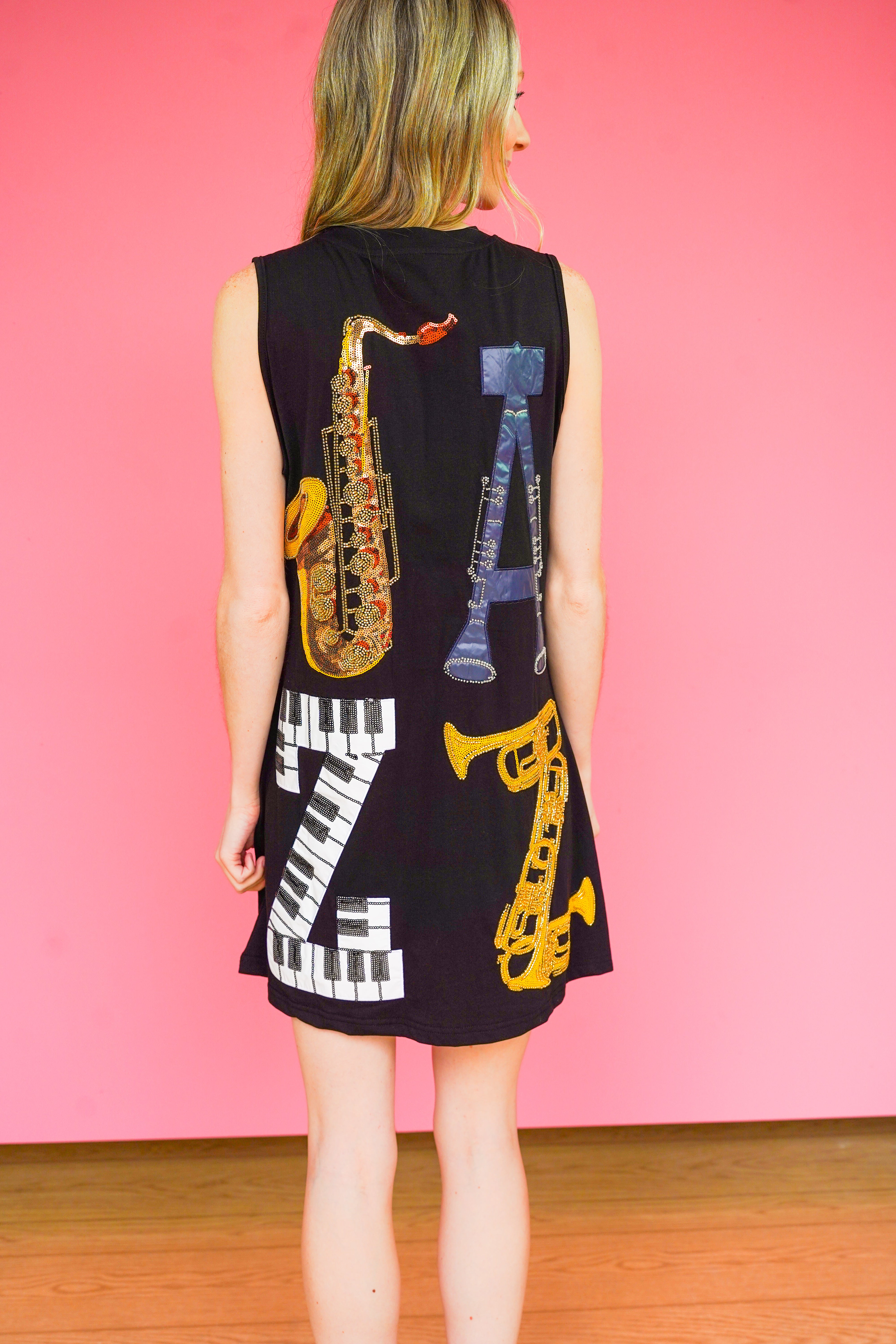 Black Jazz Instrument Tank Dress Queen of Sparkles