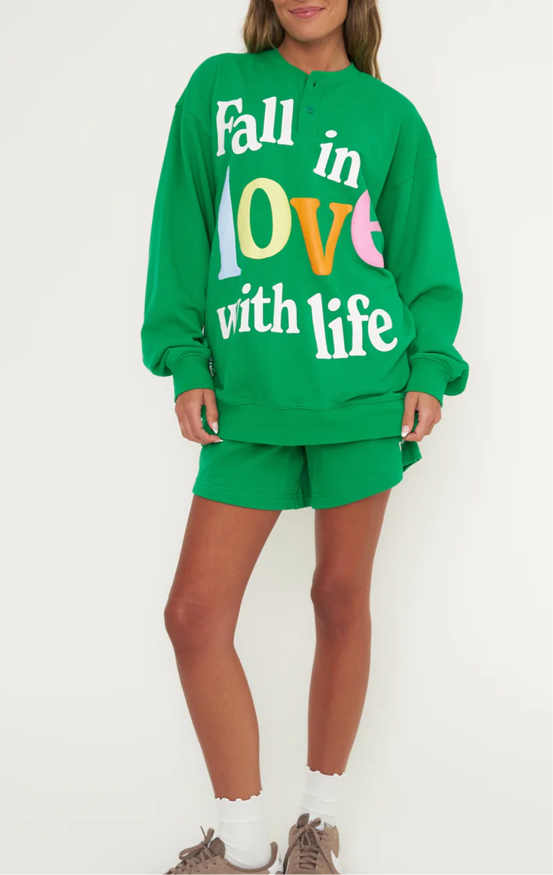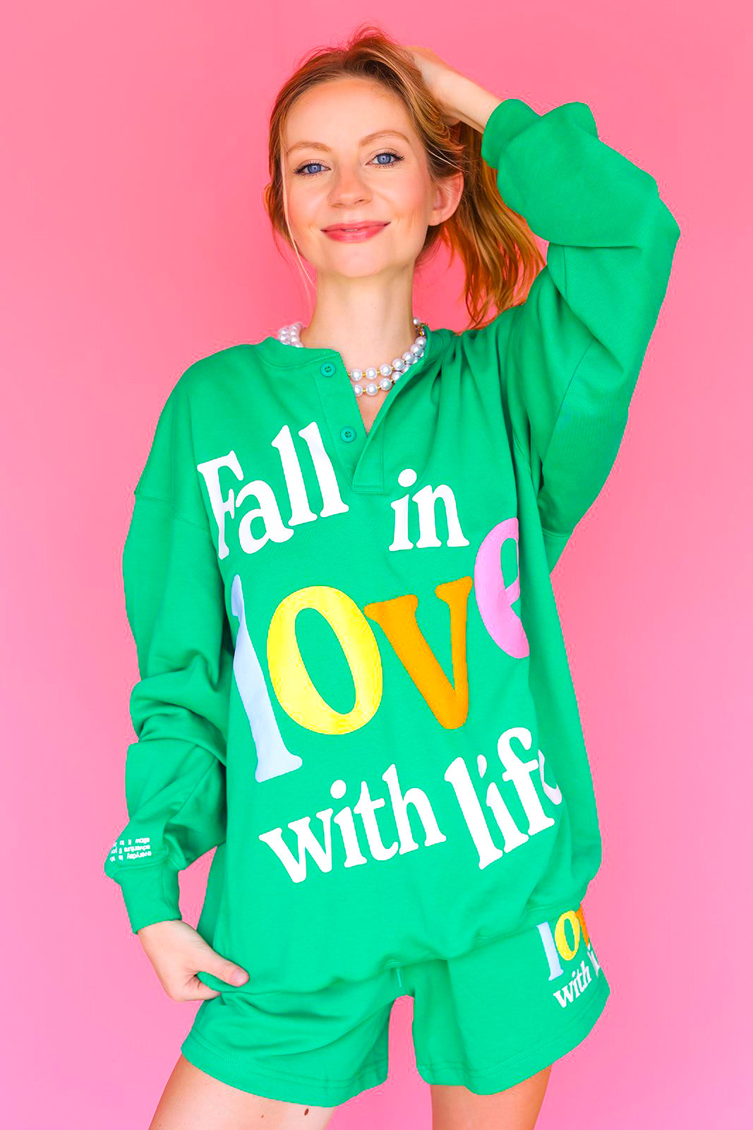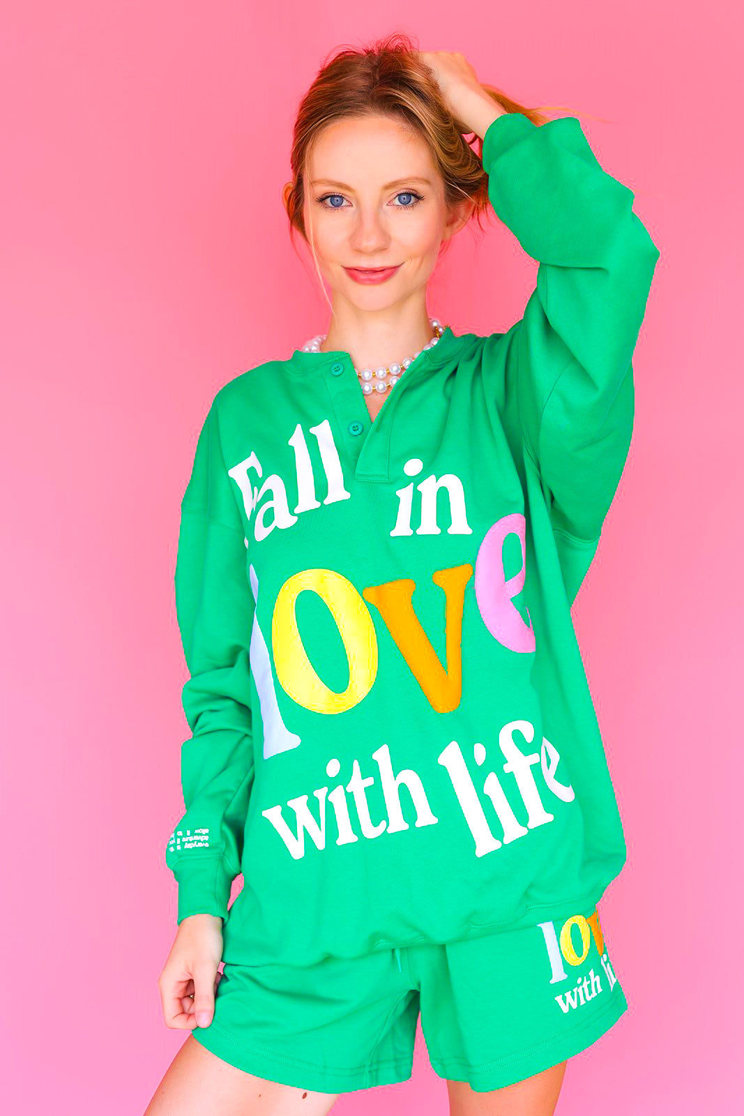 Fall In Love With Life Henley Sweatshirt - The Mayfair Group