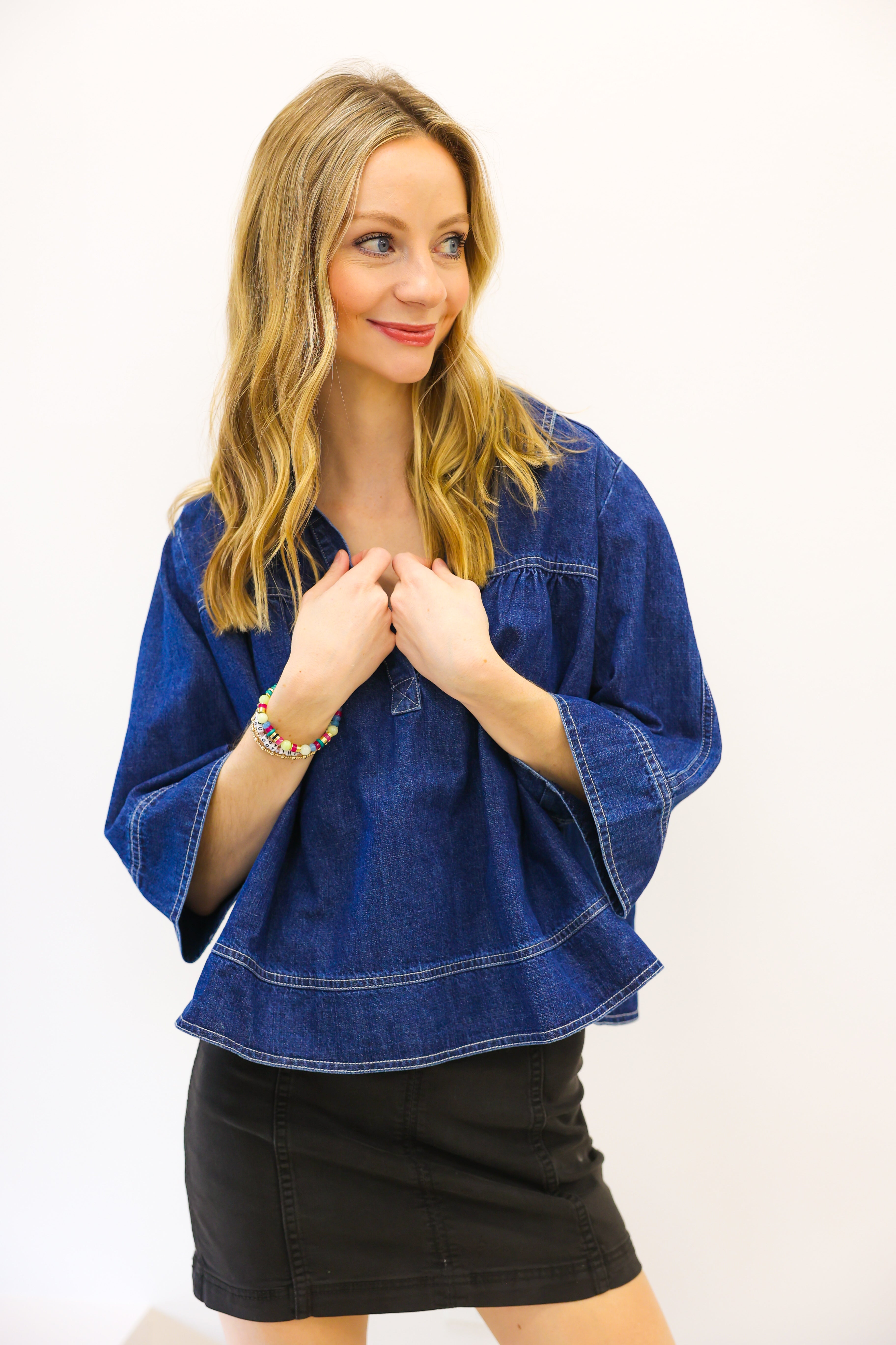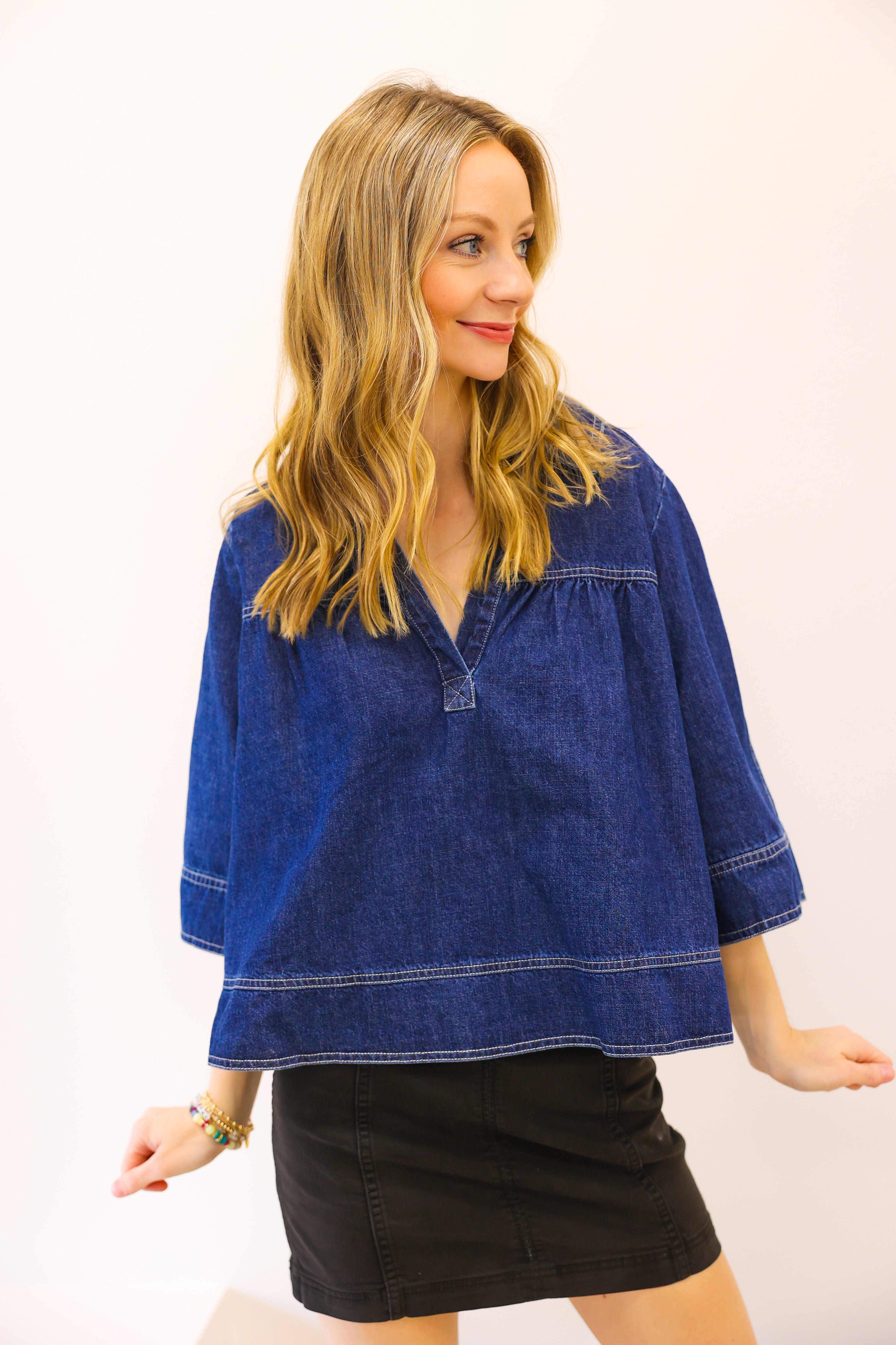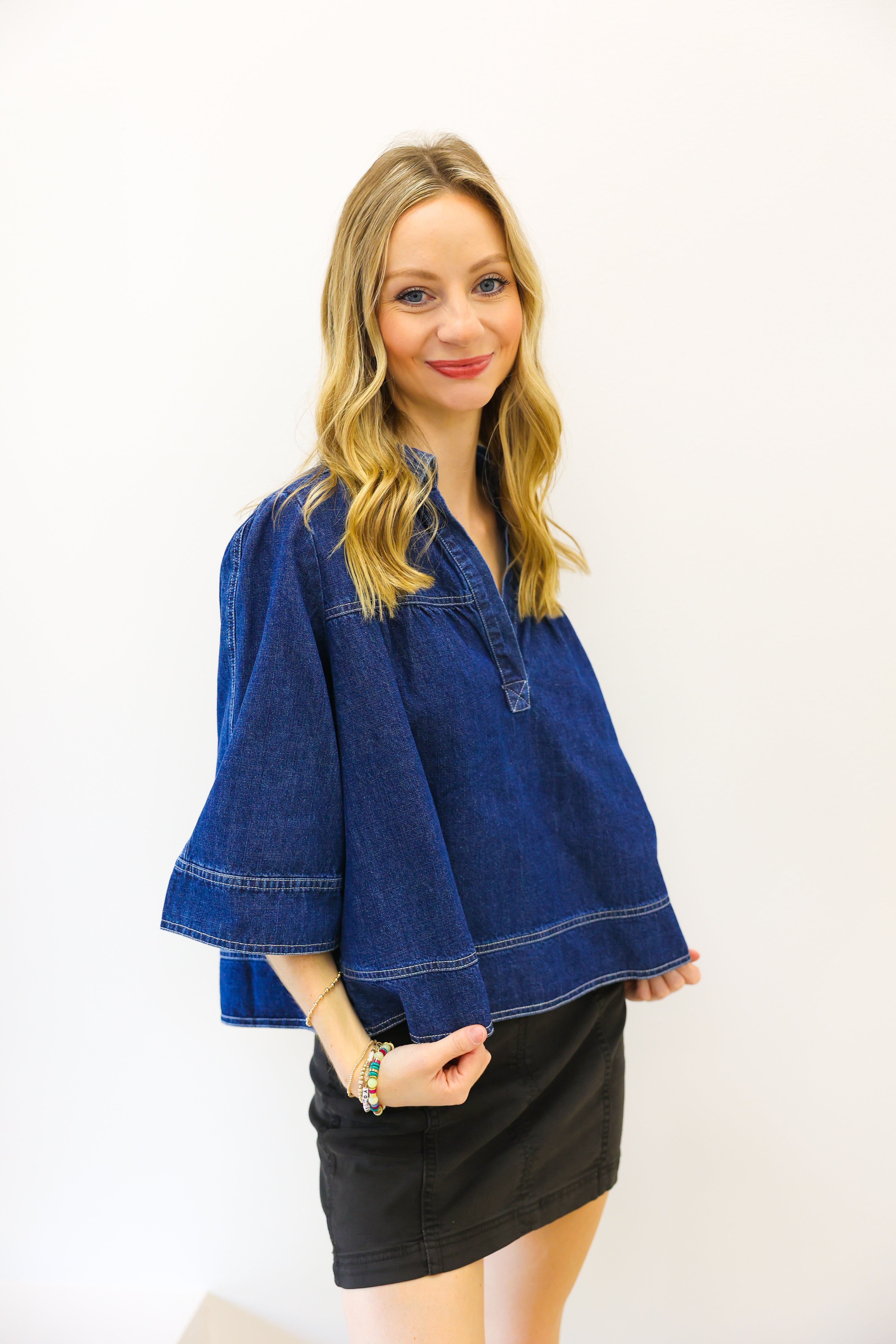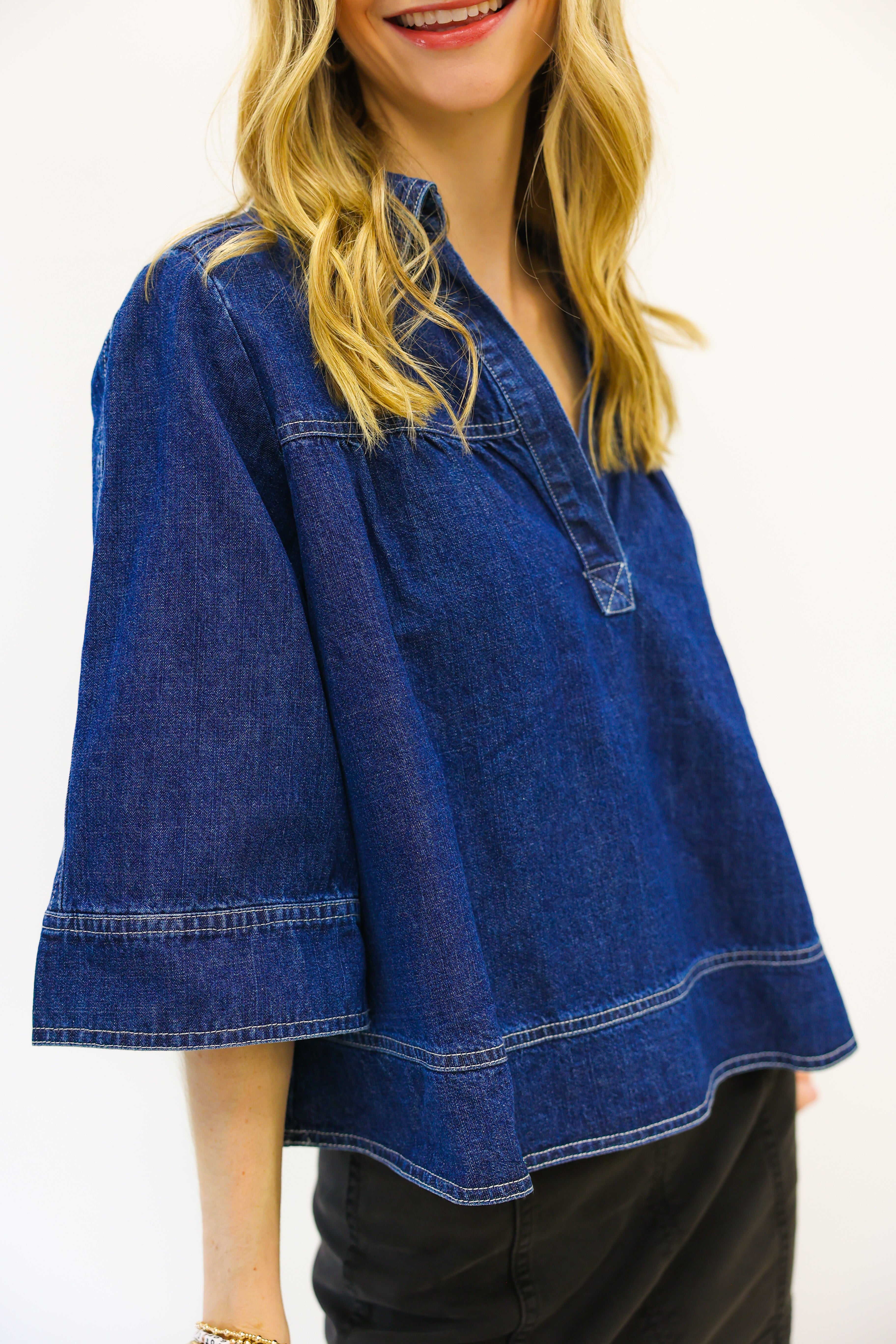 V Neck Denim Swing Top