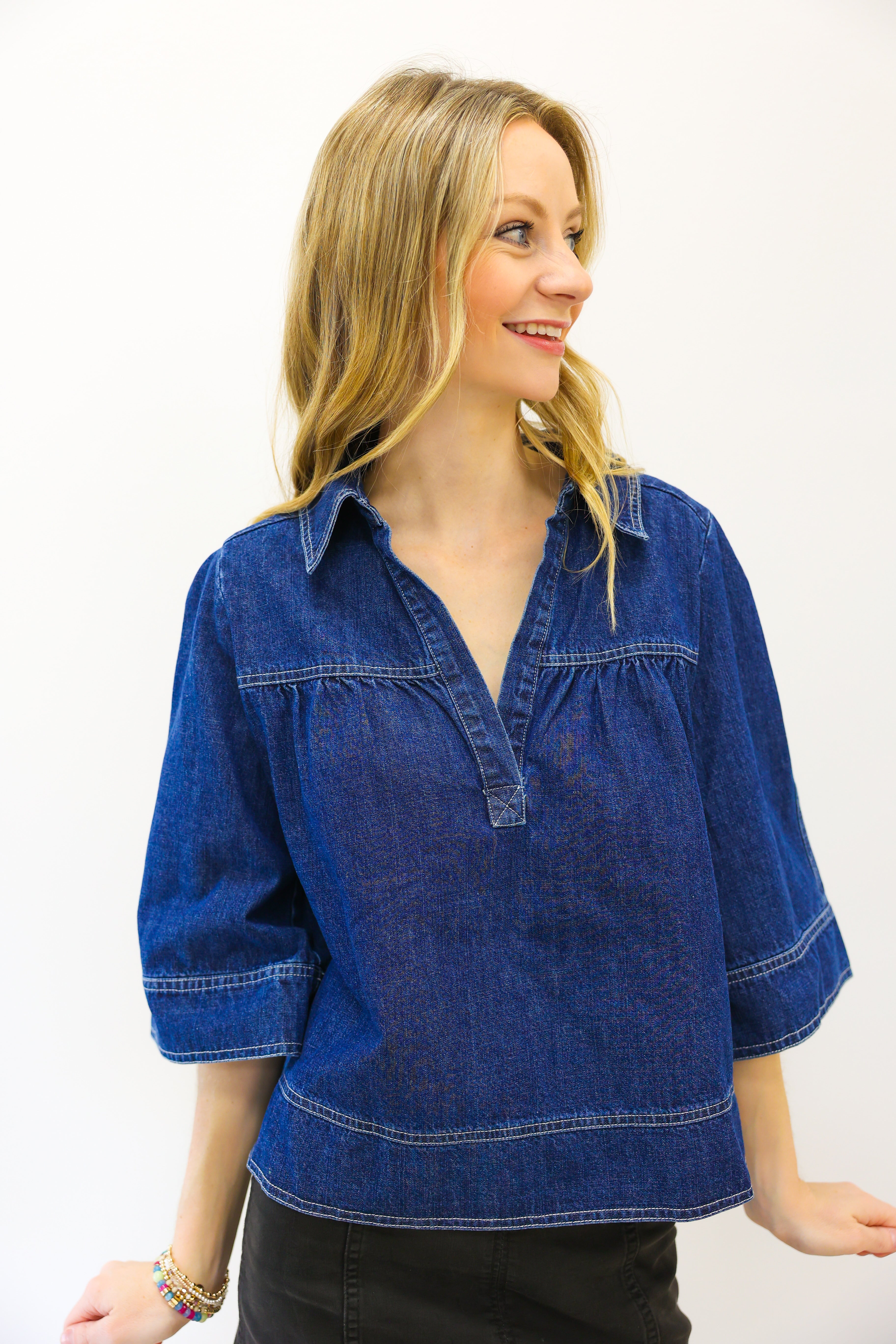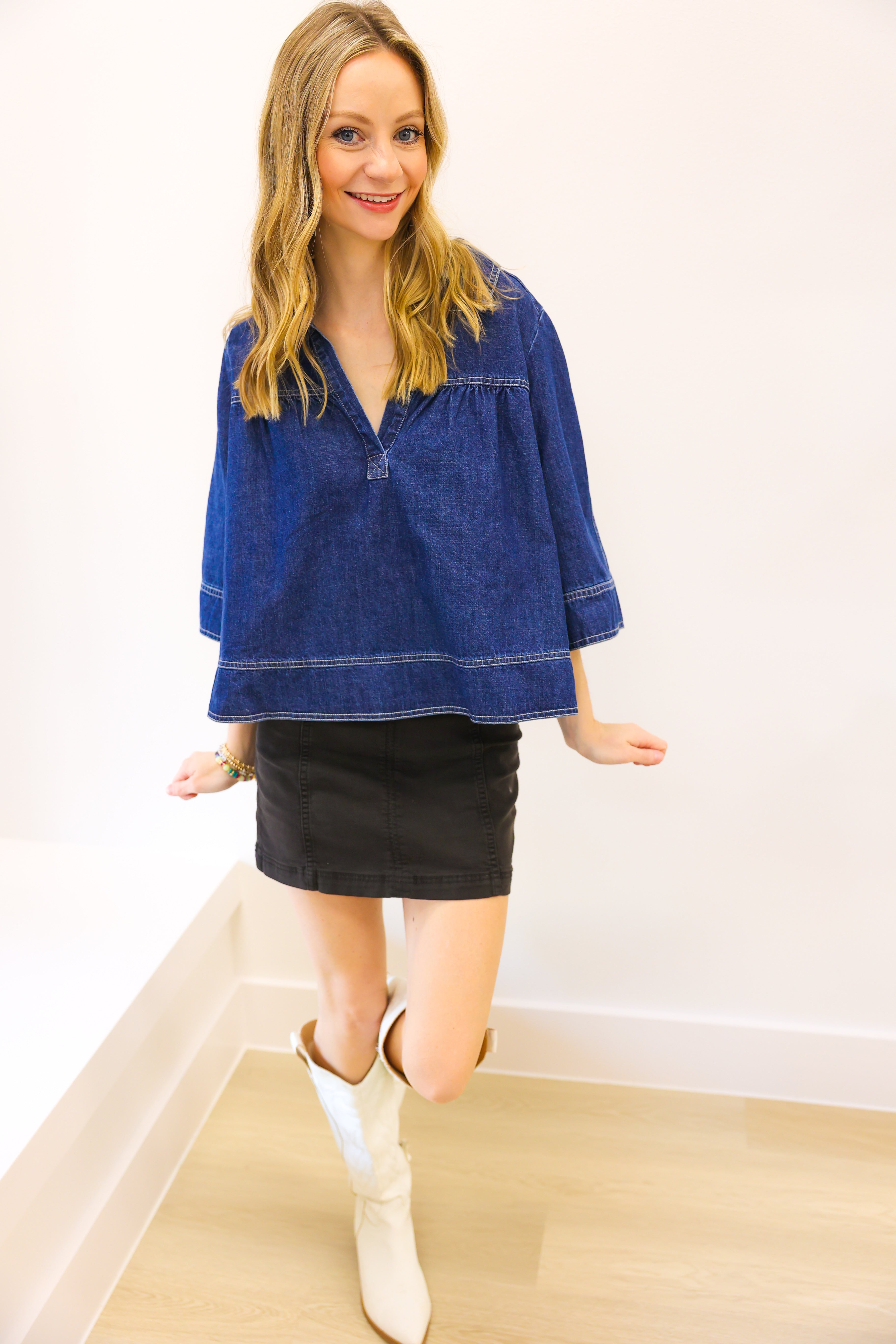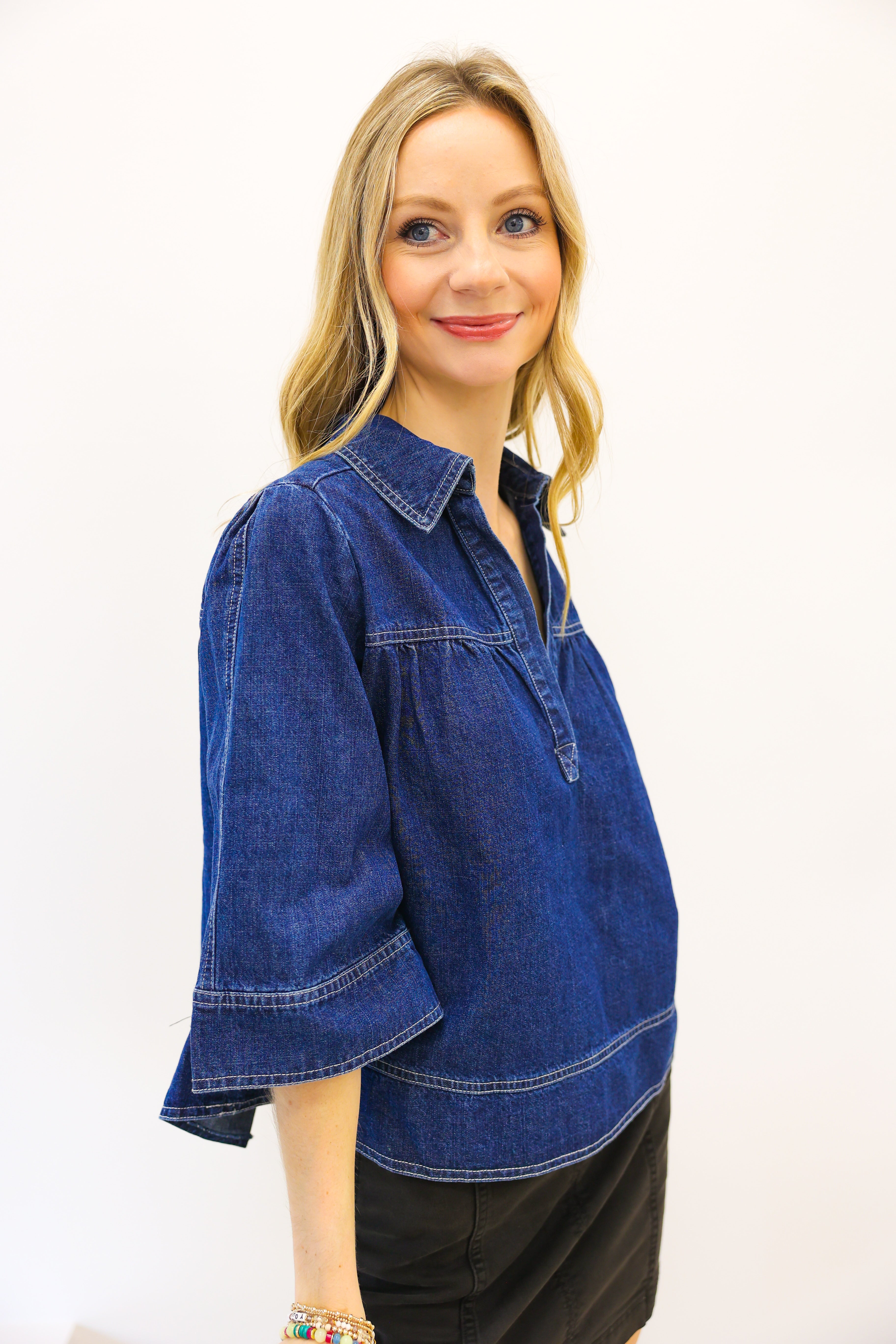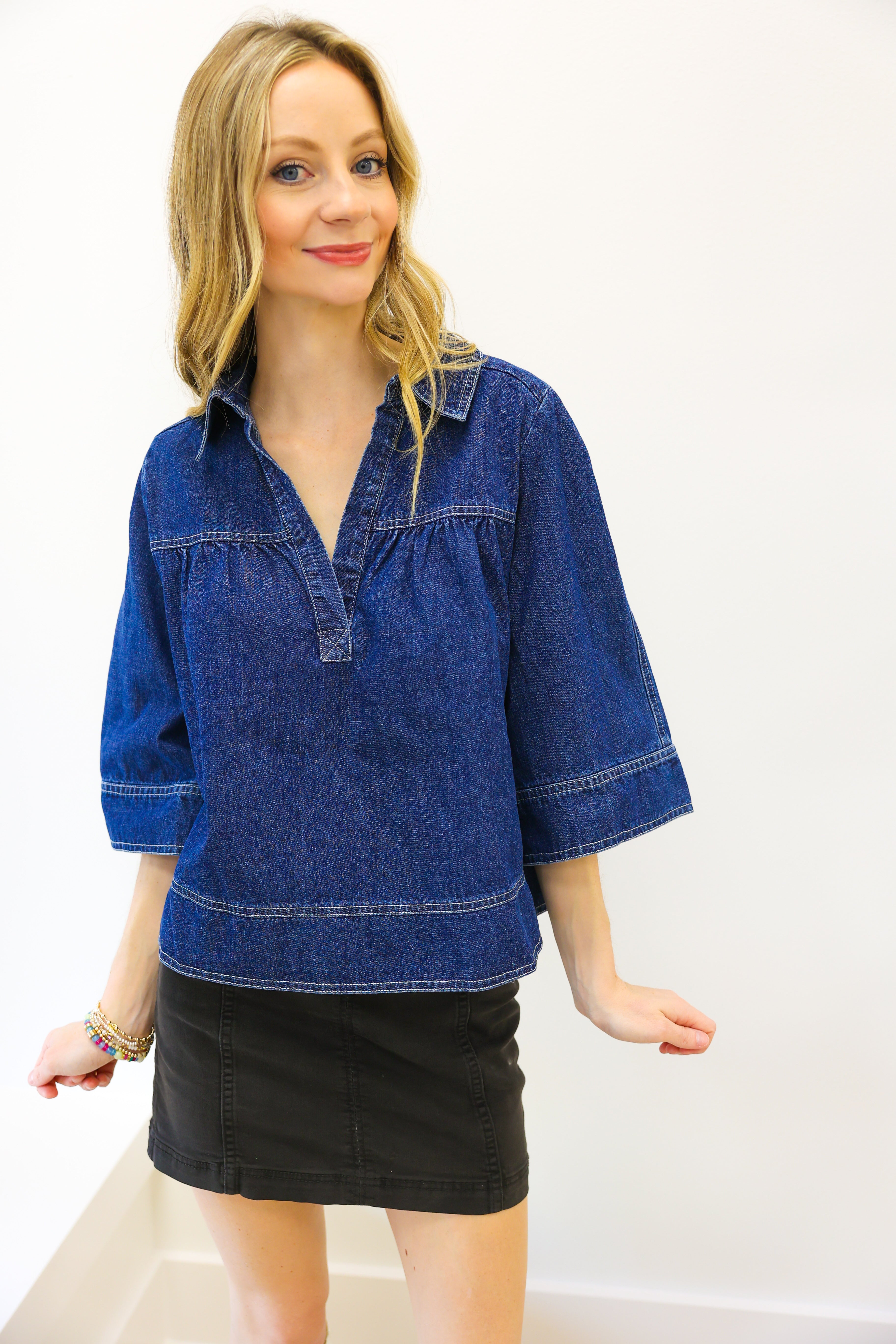 V Neck Denim Swing Top