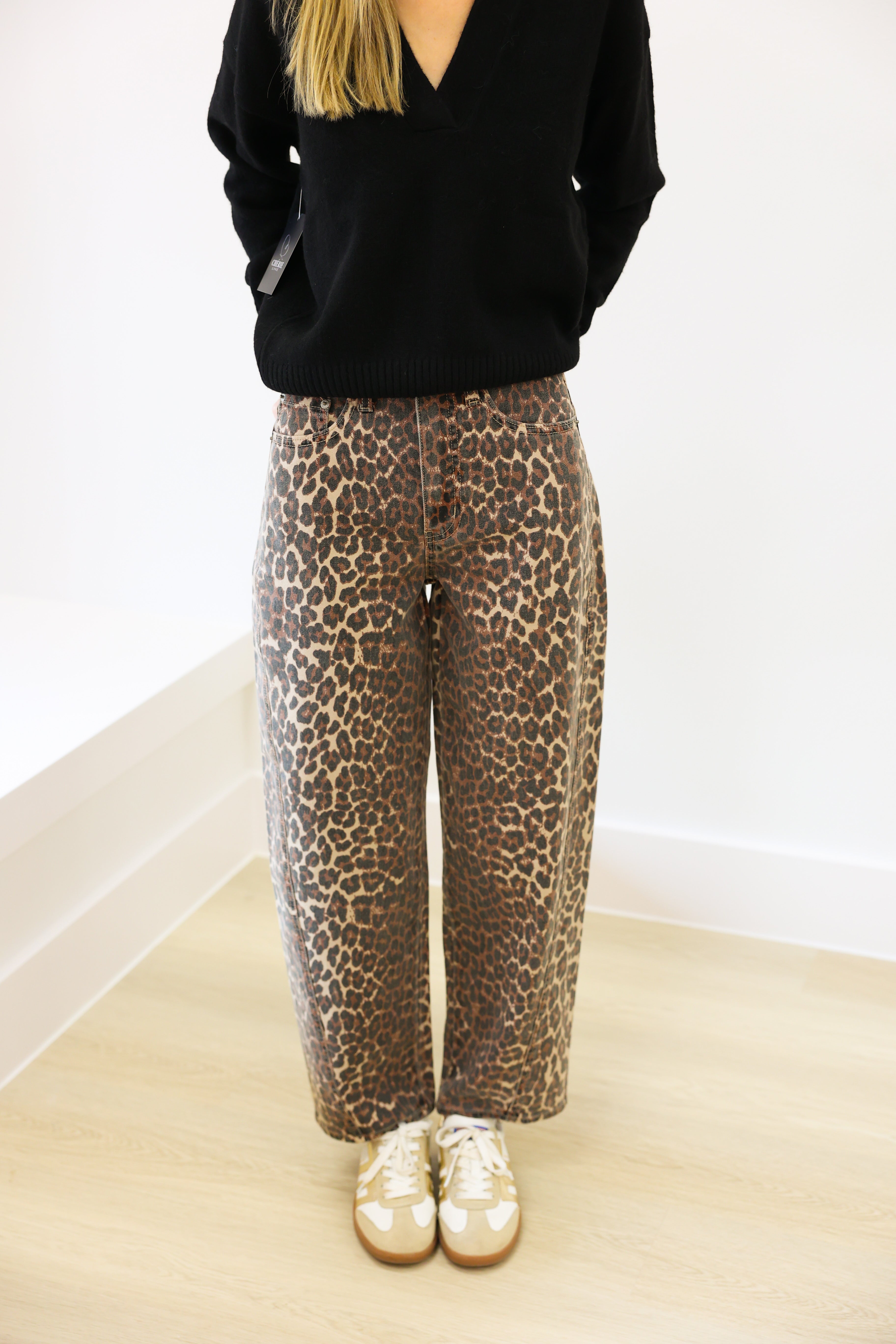 KARLIE Leopard Denim Knot Tie Top