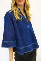 Elevate your casual wardrobe with the V Neck Denim Swing Top, designed for effortless style and comfort. Its relaxed swing silhouette flatters every shape, while the classic V neck adds a touch of feminine charm. Made from soft denim fabric, this top pairs perfectly with your favorite jeans or skirts for versatile looks from day to night. Enjoy breathable comfort and easy movement without sacrificing on trend. Refresh your everyday essentials with this must-have wardrobe staple.