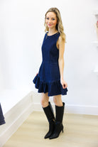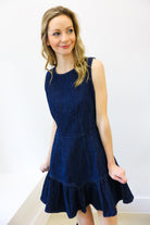 The Laurel dress in Moonlight is a denim ruffle dress in a romantic dark wash. Clean lines flare into feminine ruffles to created an elevated silhouette that can easily be dressed up or down.