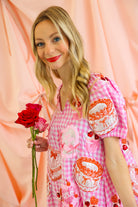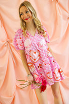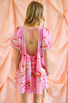 Dessert first 💕🍰 The Queen of Sparkles Pink & White Gingham Cakes & Pastries Cotton Tie-Back Dress is a whimsical dream brought to life. Designed in a classic pink-and-white gingham print, this flirty mini dress is sprinkled with playful cake and pastry illustrations that feel straight out of a Parisian bakery. Puff sleeves and a flattering V-neckline add vintage-inspired romance, while the adjustable tie-back detail ensures a just-right fit.