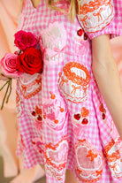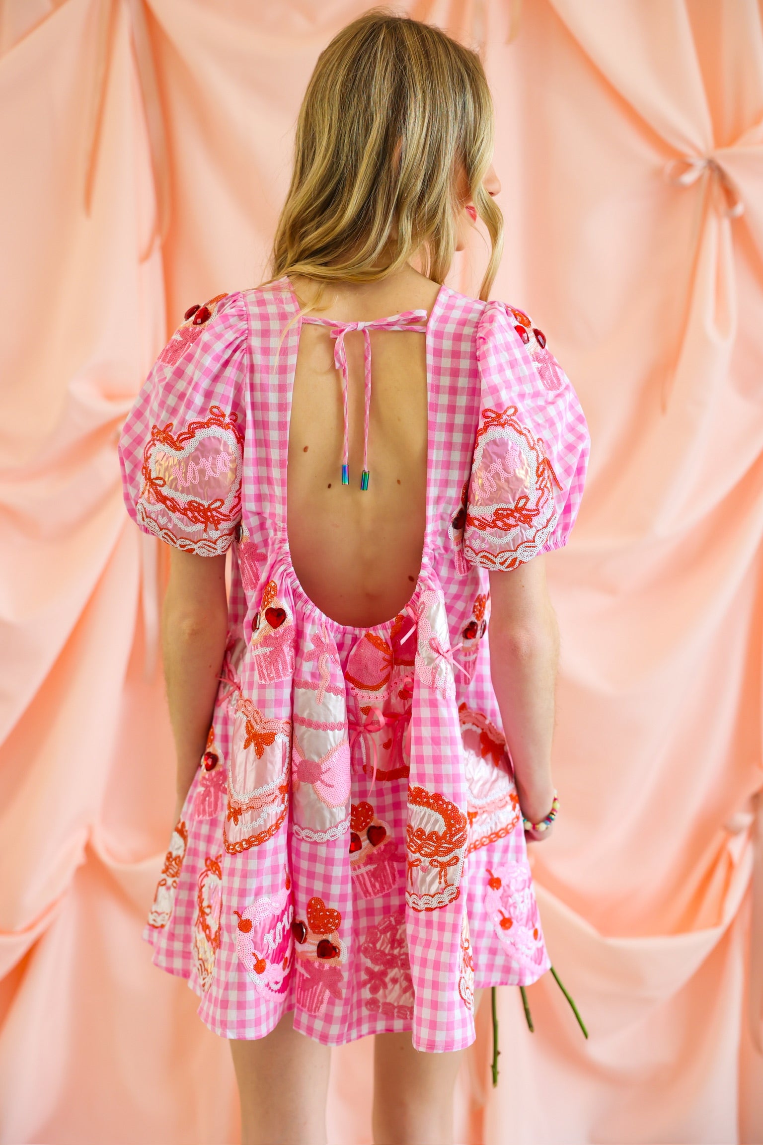 Queen of Sparkles Pink & White Gingham Cakes & Pastries Cotton Tie-Back Dress