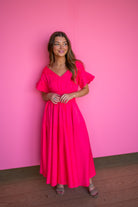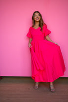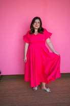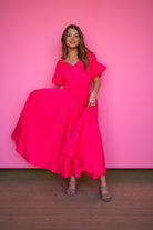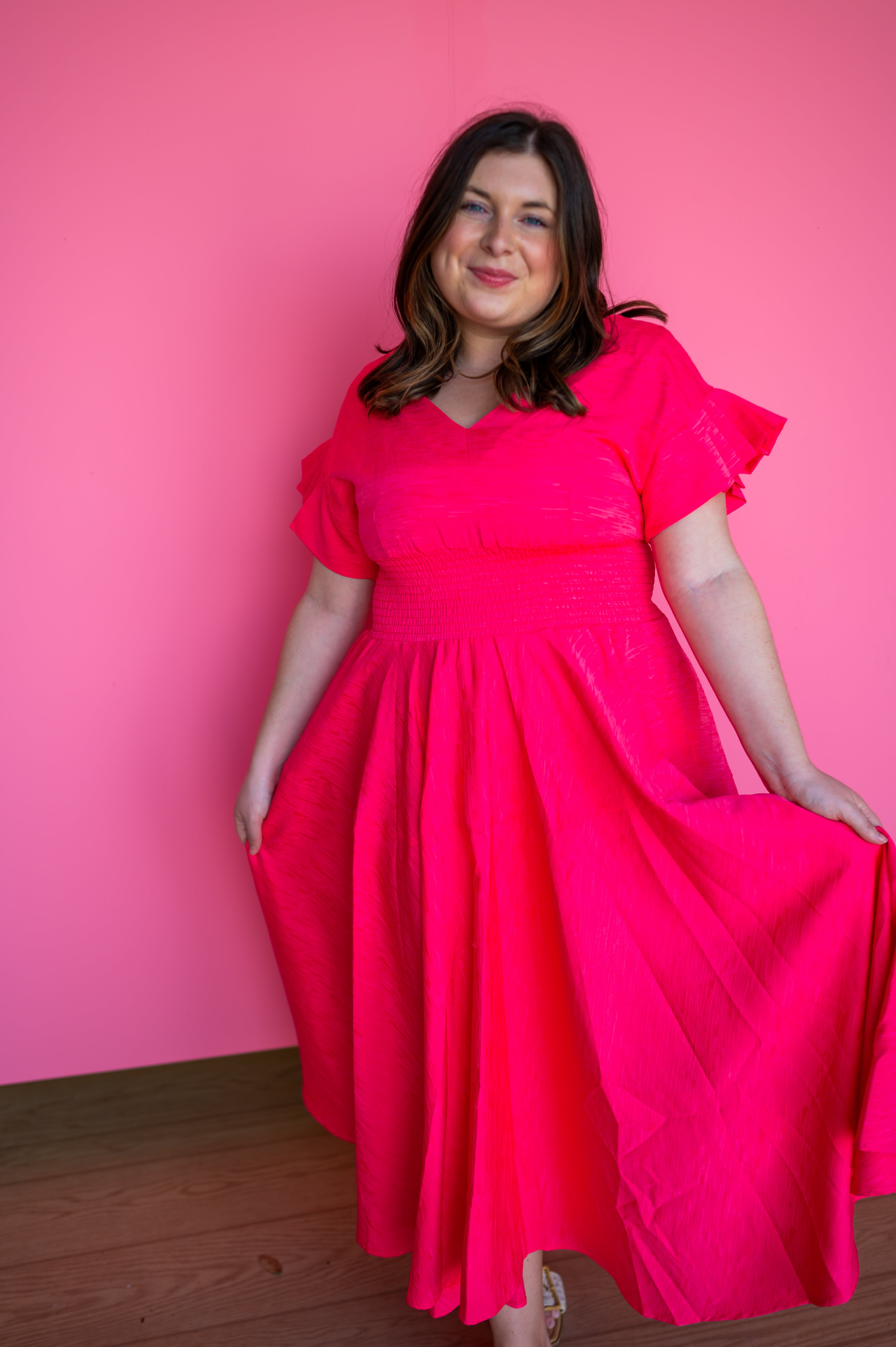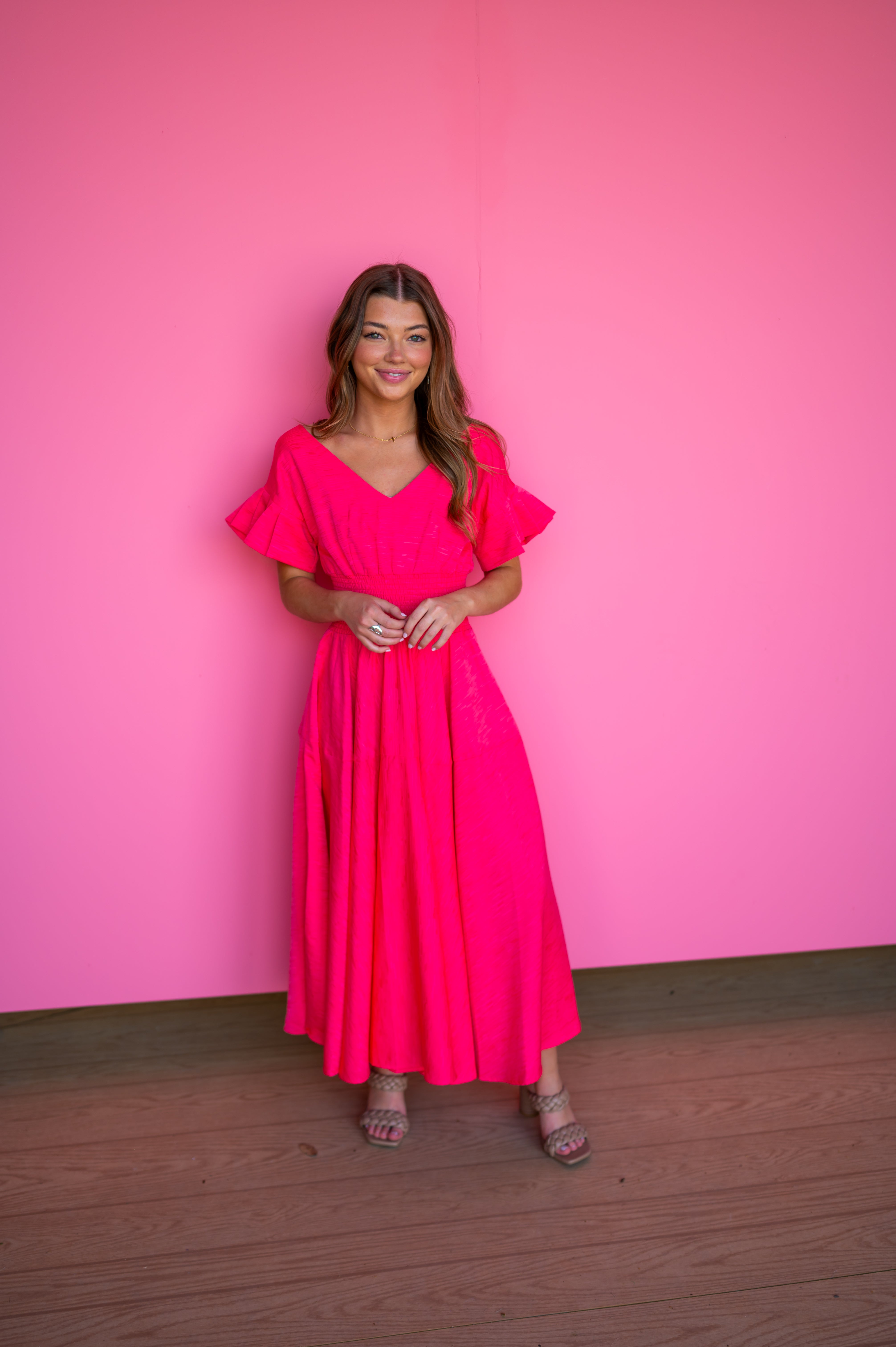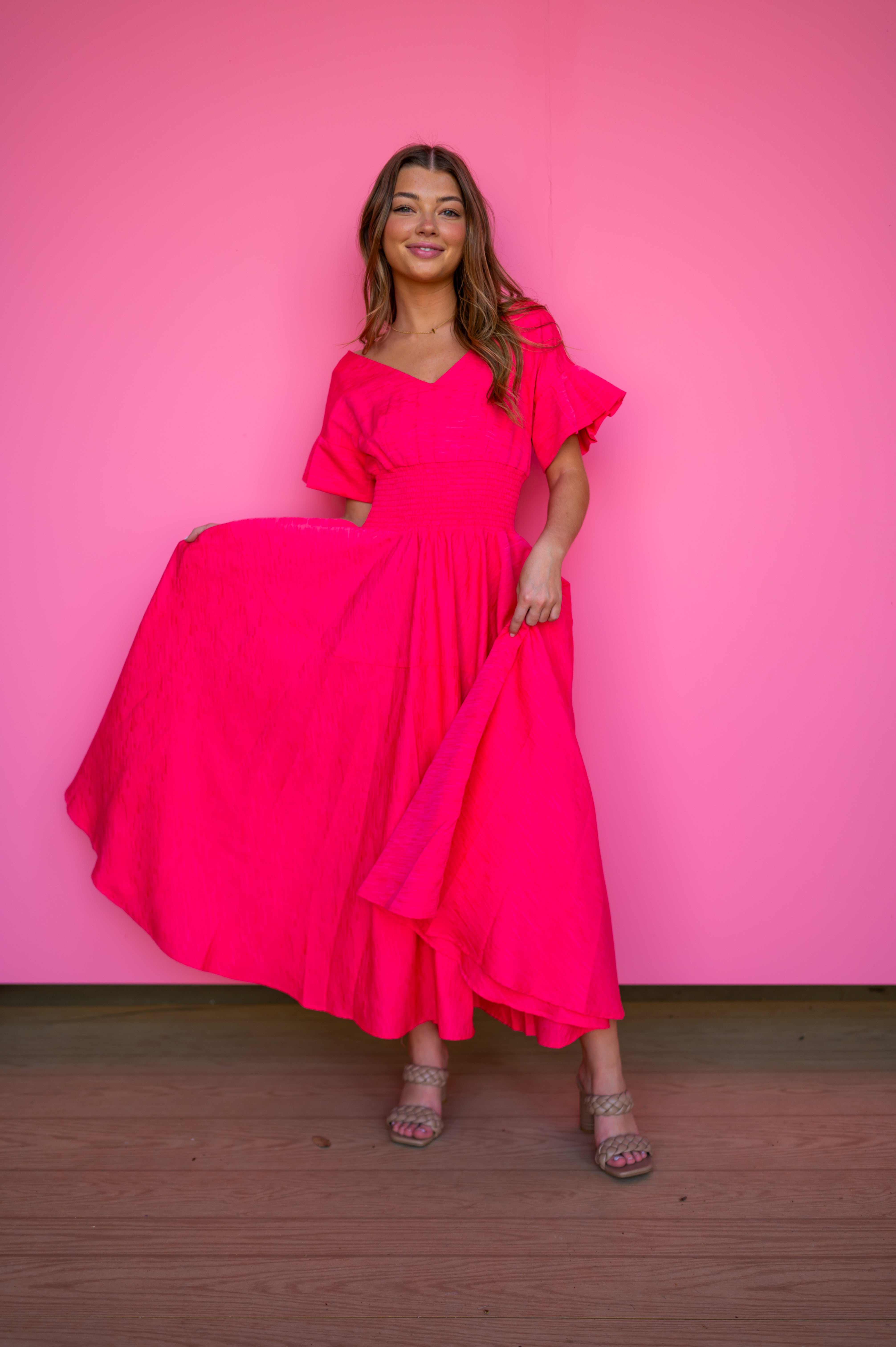 Add a playful pop to your wardrobe with the Molly Bracken Joan Pink Dress. Featuring ruffle sleeves and a smocked waist, this dress is perfect for any occasion. Stay comfortable and stylish with this quirky and fun piece.