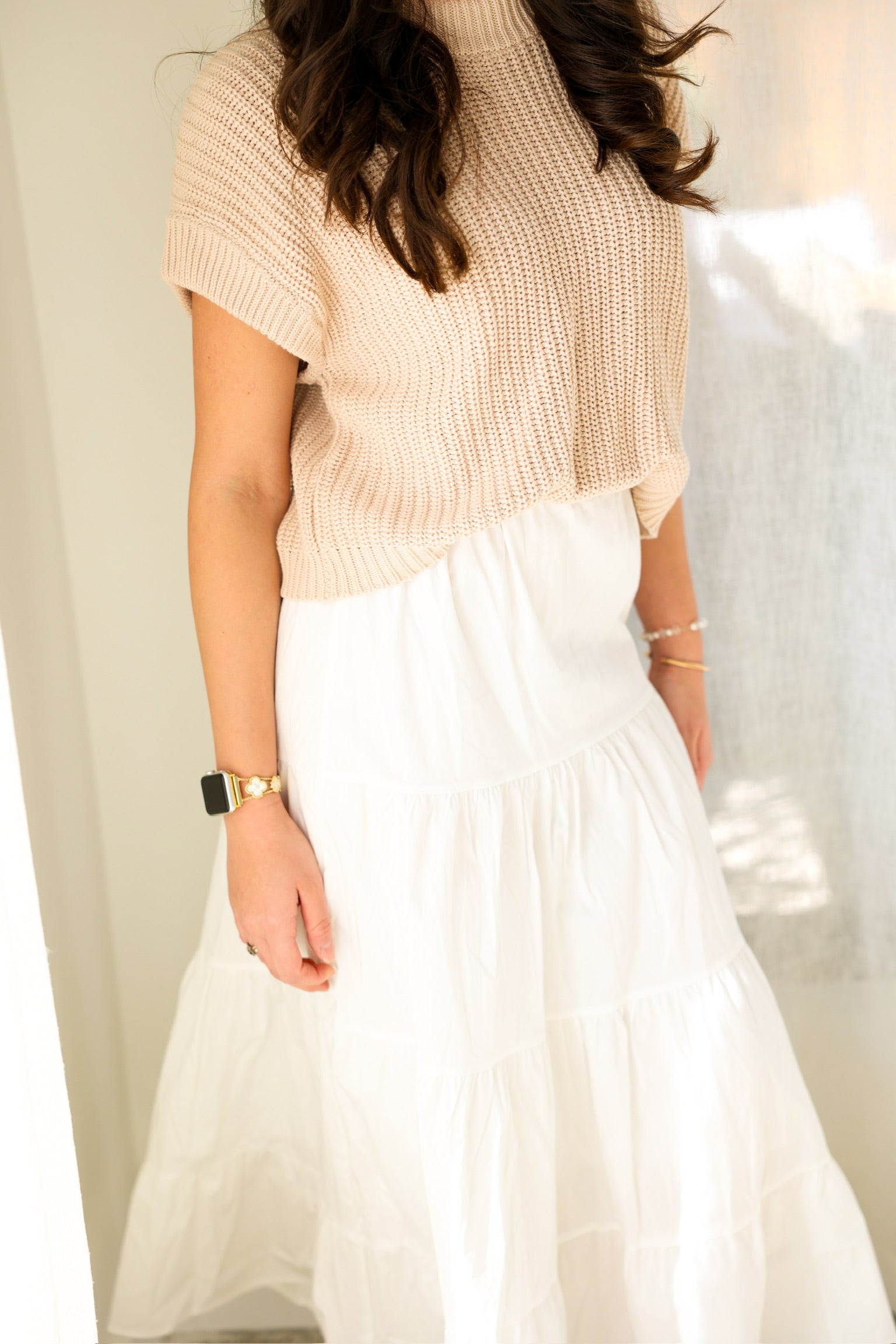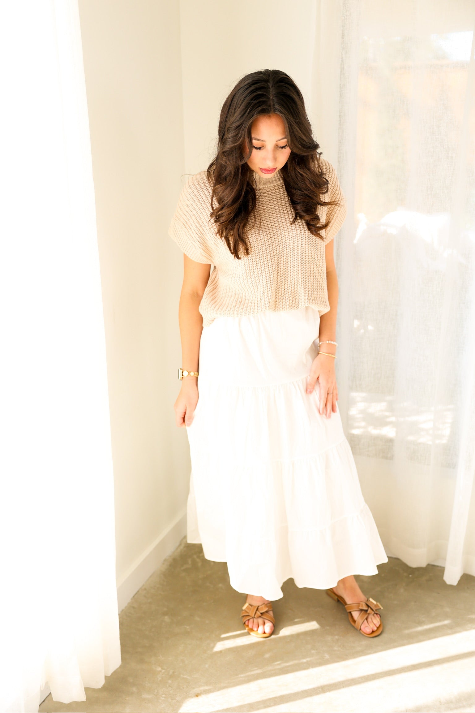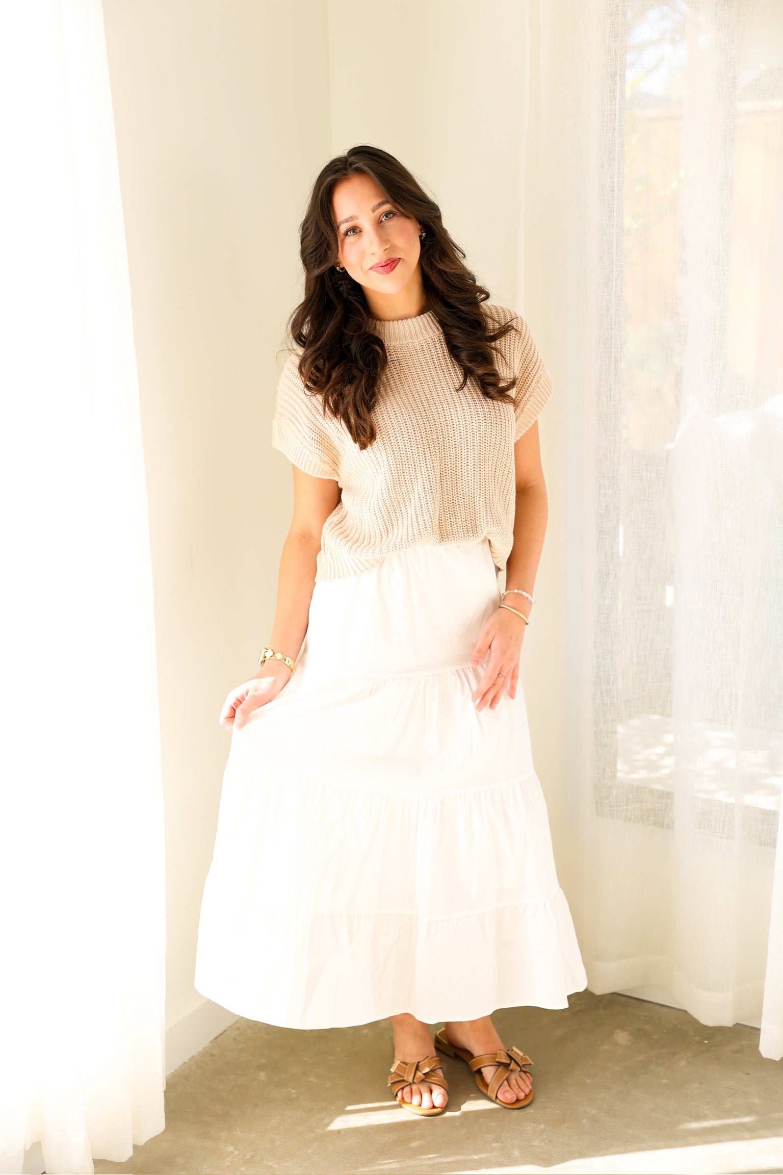 ELAN Cap Sleeve Ribbed Knit & Tiered Poplin Midi Dress