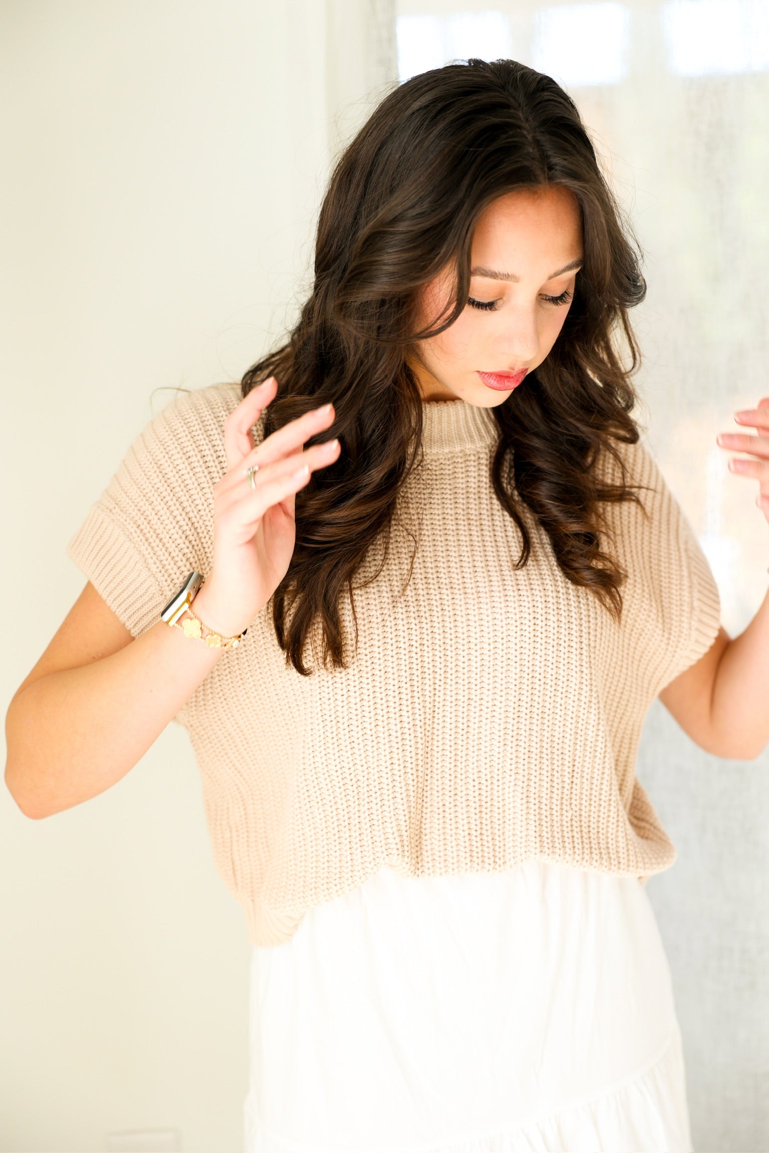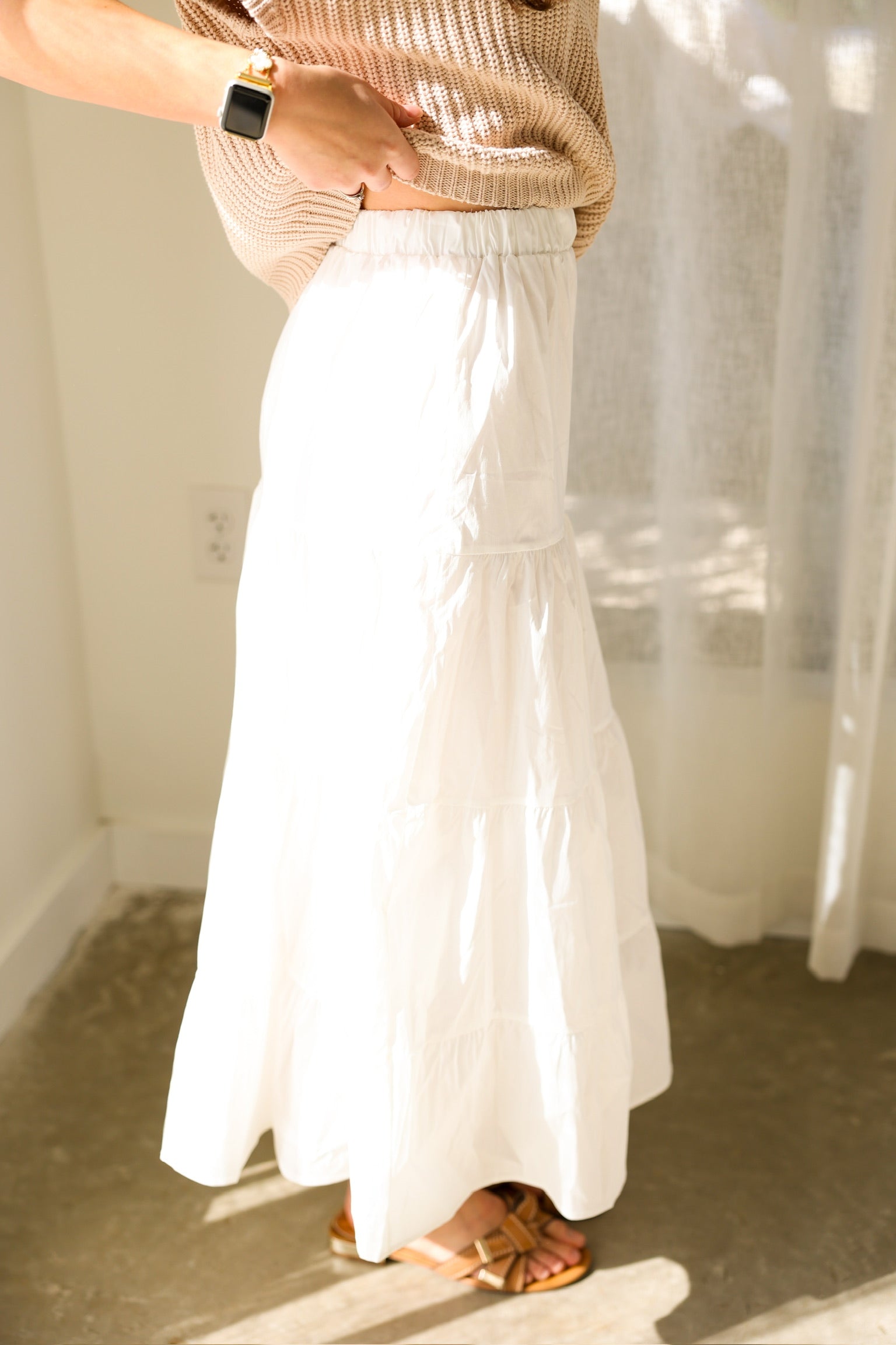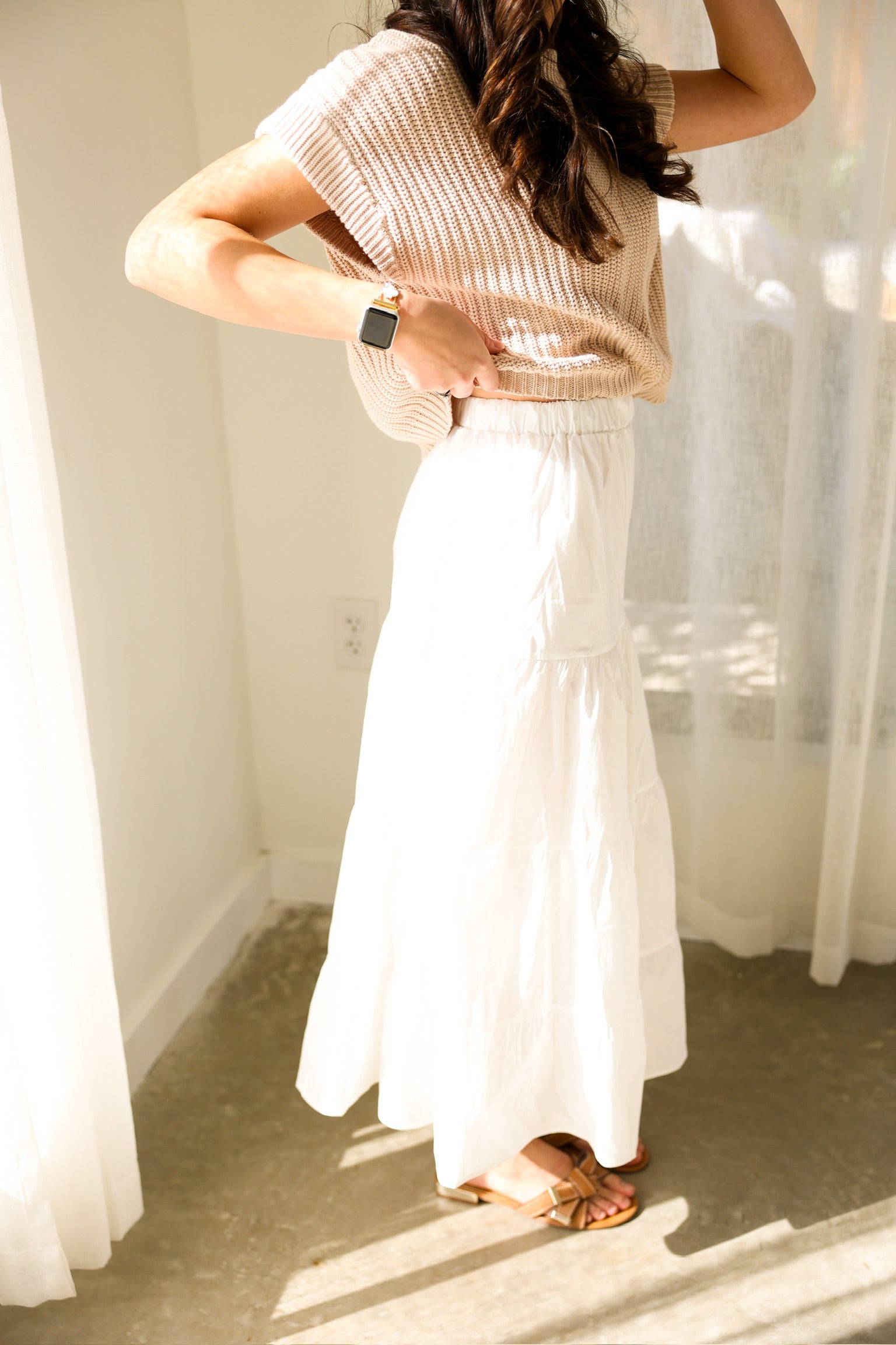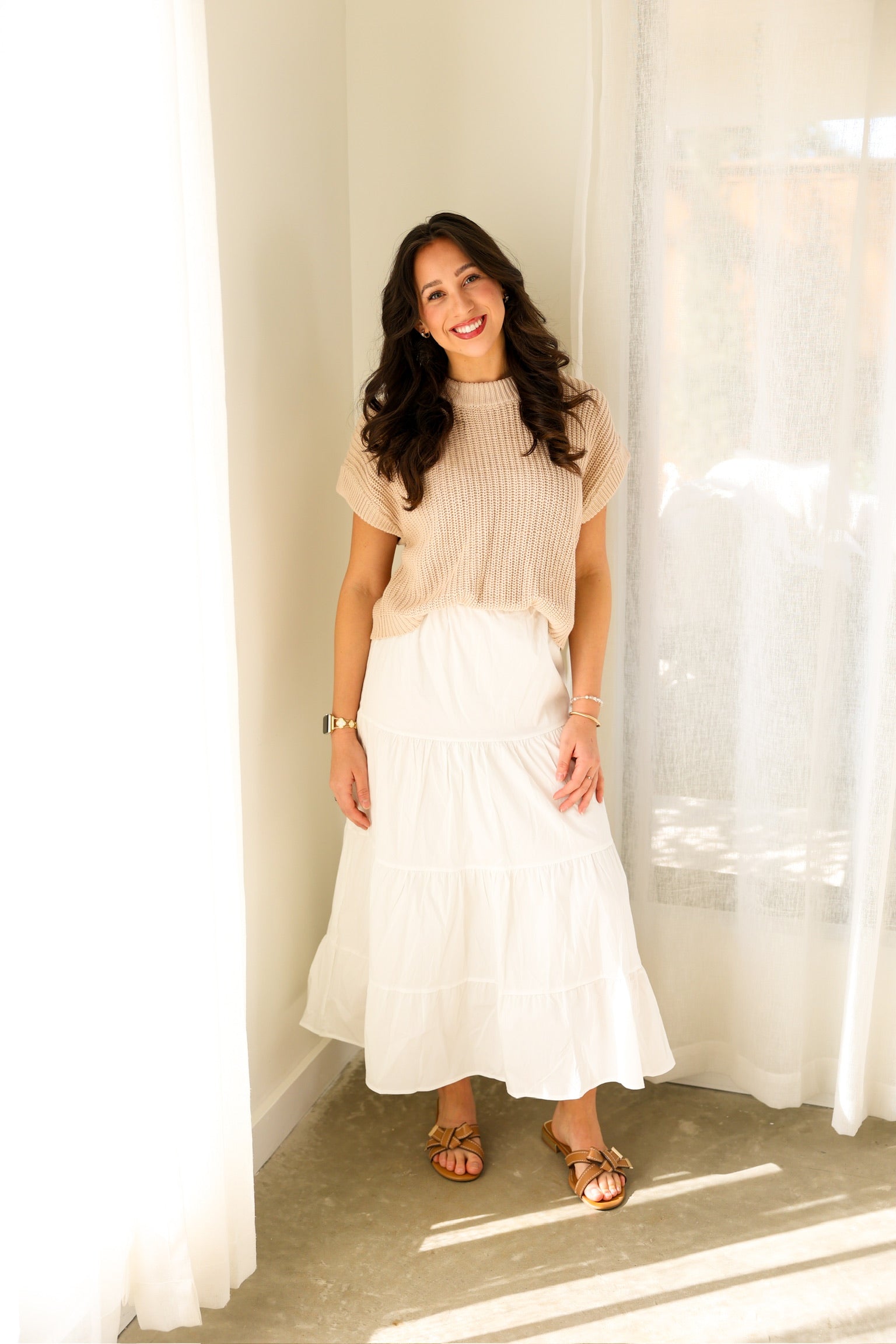 ELAN Cap Sleeve Ribbed Knit & Tiered Poplin Midi Dress