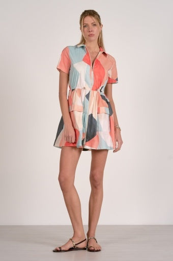 Elan Abstract Colorblock Short Sleeve Zip Front Dress