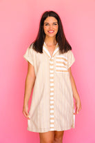 Elevate your wardrobe with the Emily McCarthy Luna Dress in Sand Stripe. This effortlessly chic dress combines timeless stripes with a flattering silhouette, perfect for any occasion. Its lightweight fabric ensures comfort throughout the day, while the subtle sand tones add a touch of understated elegance. Whether dressing up for a special event or keeping it casual, this dress offers versatile style that moves with you. Make the Luna Dress your go-to piece for a polished, confident look.