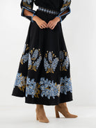 The Milly Skirt is a true statement piece from this collection, designed to celebrate the beauty and heritage of the state. Crafted in a structured, denim-like fabric, it showcases an embroidered placed print of Texas’ iconic bluebonnet flower. A figure-hugging high waistband flows into a voluminous maxi silhouette, creating graceful movement with every step. Finished in the back with an exposed gold zipper, the Milly balances modern refinement with western charm. Pair it with the coordinating Graham Top for a head-to-toe look that captures both elegance and Texan spirit.