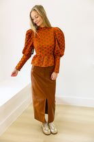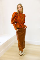Elevate your wardrobe with the Emily McCarthy Zoe Top in Tangerine Mod. This vibrant top offers a fresh pop of color ideal for making a bold, stylish statement. Its flattering fit and sleek design effortlessly blend comfort with modern sophistication, making it perfect for both casual outings and chic events. Brighten your look while enjoying versatile wear that complements a variety of styles.
