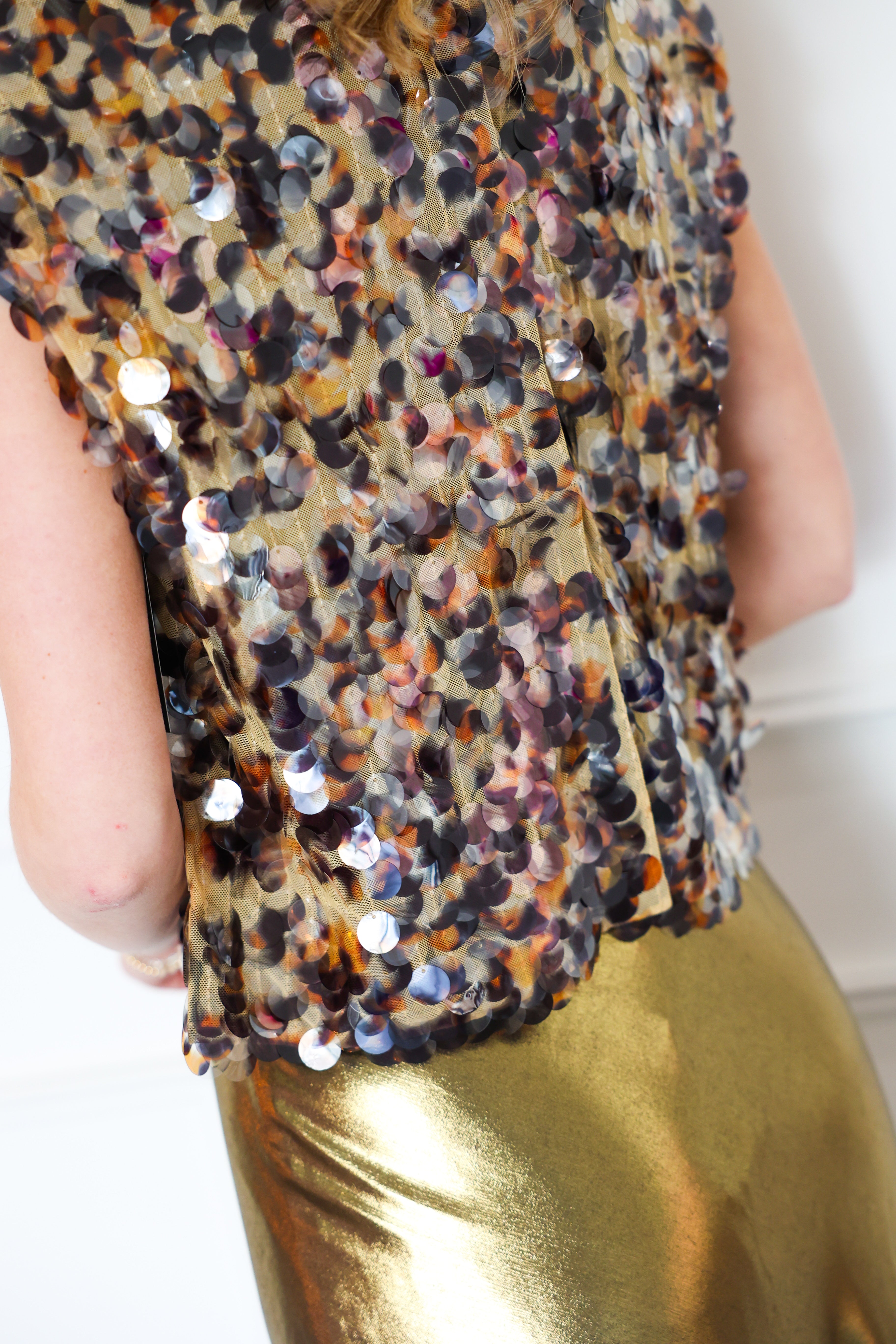 -Allover tortoise shell sequin embellishment