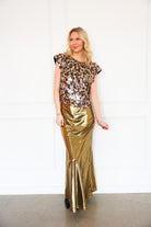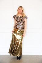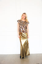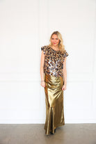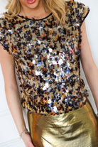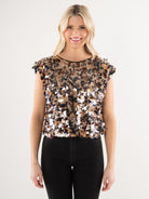 Make a statement with the Emily McCarthy Hatti Tank in Tortoise Shell Sequin. This elevated sleeveless top features an allover tortoise shell–inspired sequin design that catches the light beautifully while still feeling rich and wearable. The Hatti Tank offers a flattering, easy silhouette with subtle structure at the shoulders, making it perfect for dressing up denim or pairing with tailored bottoms for a night out. Equal parts bold and sophisticated, this top is made to shine.