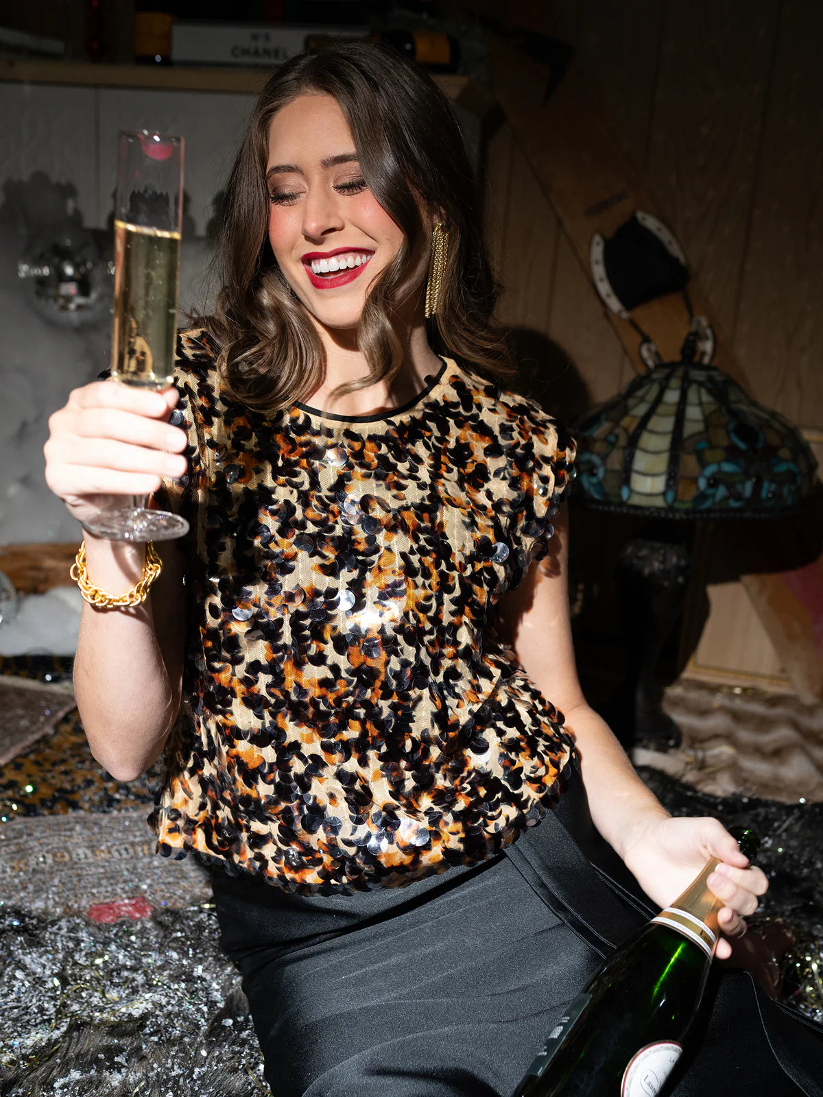 Emily McCarthy Hatti Tank – Tortoise Shell Sequin