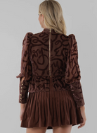 The Zoe Top in Rope is a striking blend of texture and silhouette, designed with voluminous puffed sleeves that taper into a slim fit for a dramatic yet wearable shape. A mock neckline, peplum hem, and back zip closure add polish to the feminine cut. The velvet rope motif spells out “JOY” across the fabric, a subtle nod to western-inspired detail that remains chic, unique, and elevated. Perfect for statement dressing, this top balances playful texture with timeless sophistication.