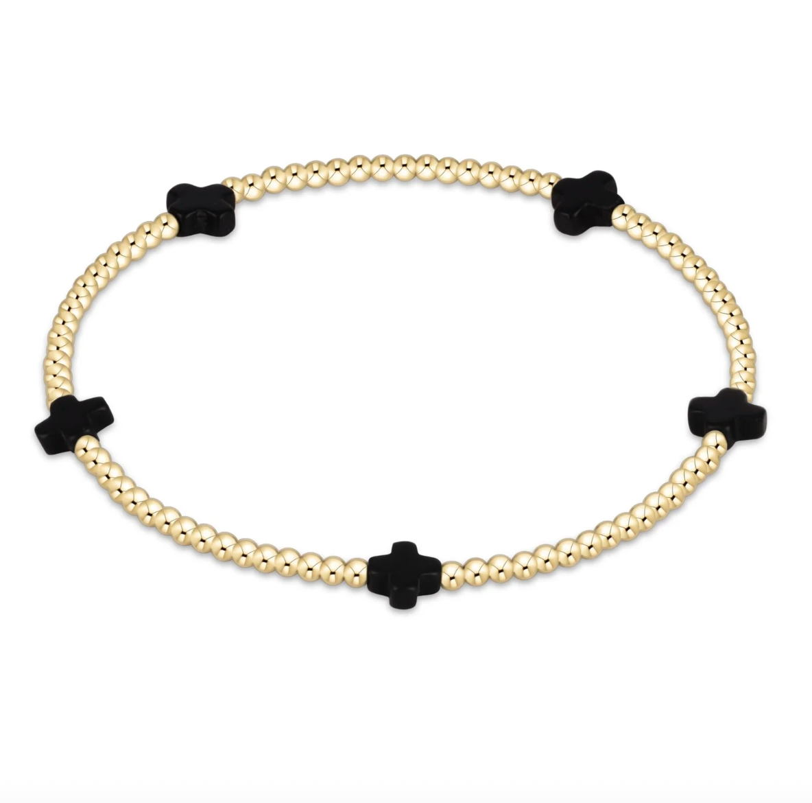 enewton Signature Cross Small Gold Pattern 2mm Bead Bracelet - Onyx
