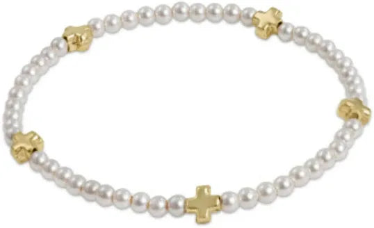 enewton Signature Cross Gold Pattern 3mm Bead Bracelet - Gold