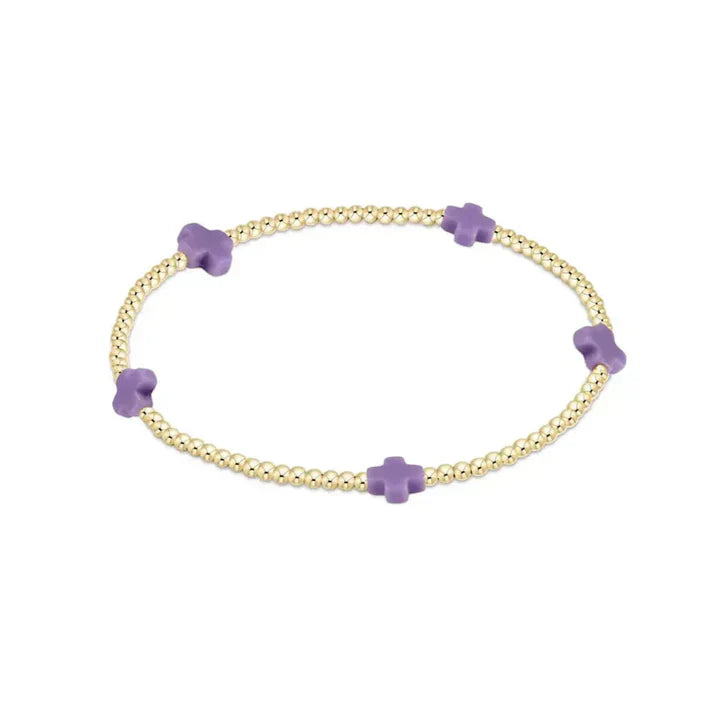 enewton Signature Cross Small Gold Pattern 2mm Bead Bracelet - Purple
