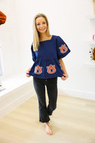 Elevate your wardrobe with The Puff Sleeve Peplum Top - Auburn by Stewart Simmons. Featuring elegant puff sleeves and a flattering peplum silhouette, this top enhances your shape while adding a touch of sophistication. Perfect for both casual outings and dressier occasions, it combines comfort with style effortlessly. Make a statement with this versatile piece that brings timeless charm to any look.