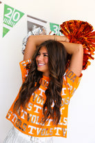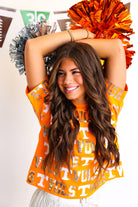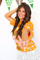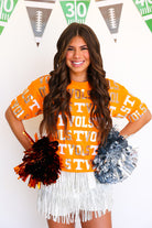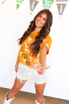 Elevate your casual wardrobe with The Sequin Repeat Tee - Tennessee. This stylish tee features shimmering sequins that add a touch of sparkle to your everyday look. Perfect for pairing with jeans or layering under a jacket, it offers both comfort and eye-catching appeal. Make a statement effortlessly with this versatile and chic tee.